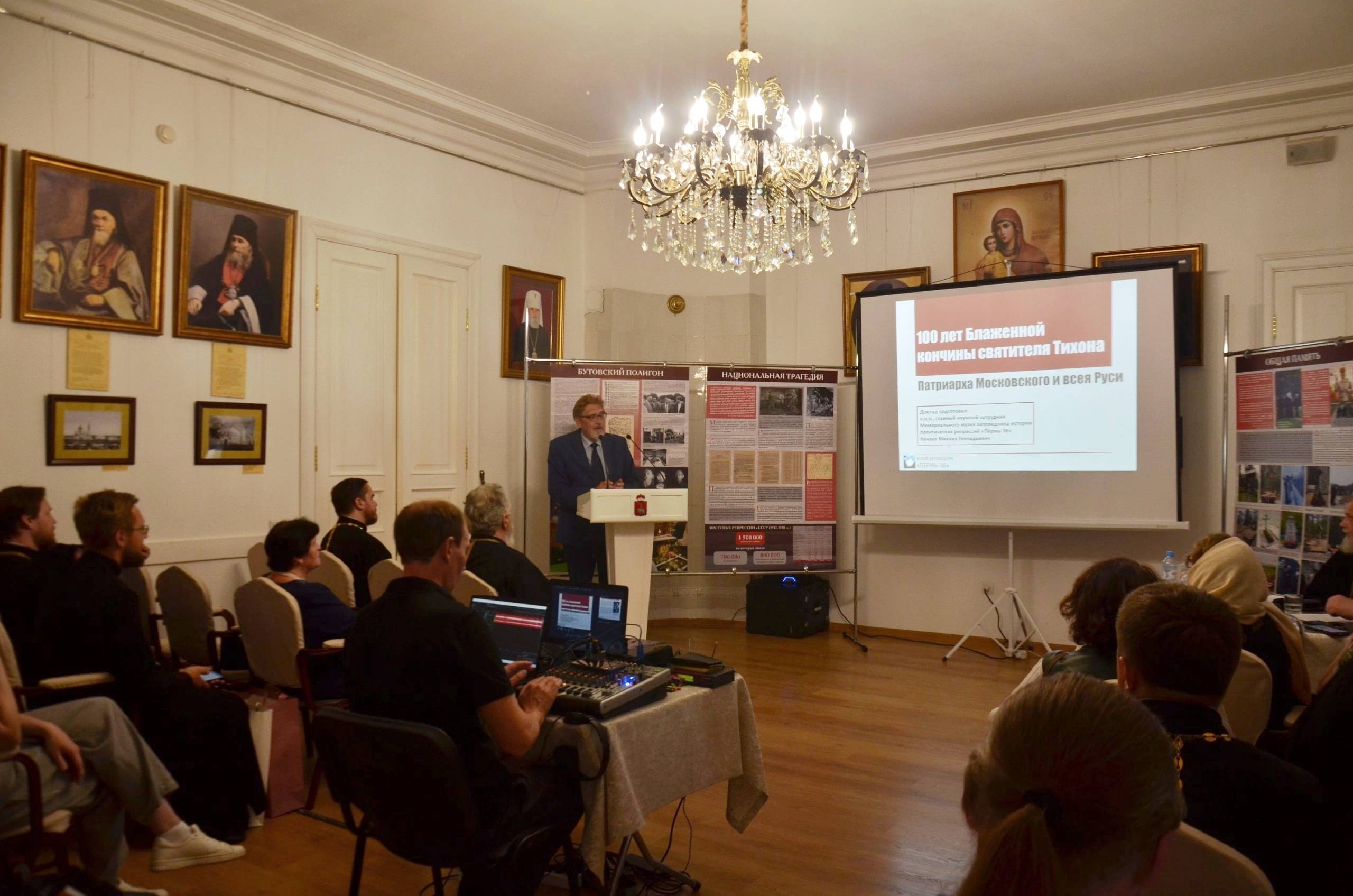 9 июня 2025 года в Перми состоялся круглый стол «Сохранение общей исторической памяти о новомучениках Церкви Русской и жертвах политических репрессий в сотрудничестве Русской Православной Церкви и государства. К 100-летию блаженной кончины святителя Тихона, Патриарха Московского и всея России», который прошел в рамках XX религиозного общественно-делового форума «Русь Православная» в Музее Архиерейского квартала.