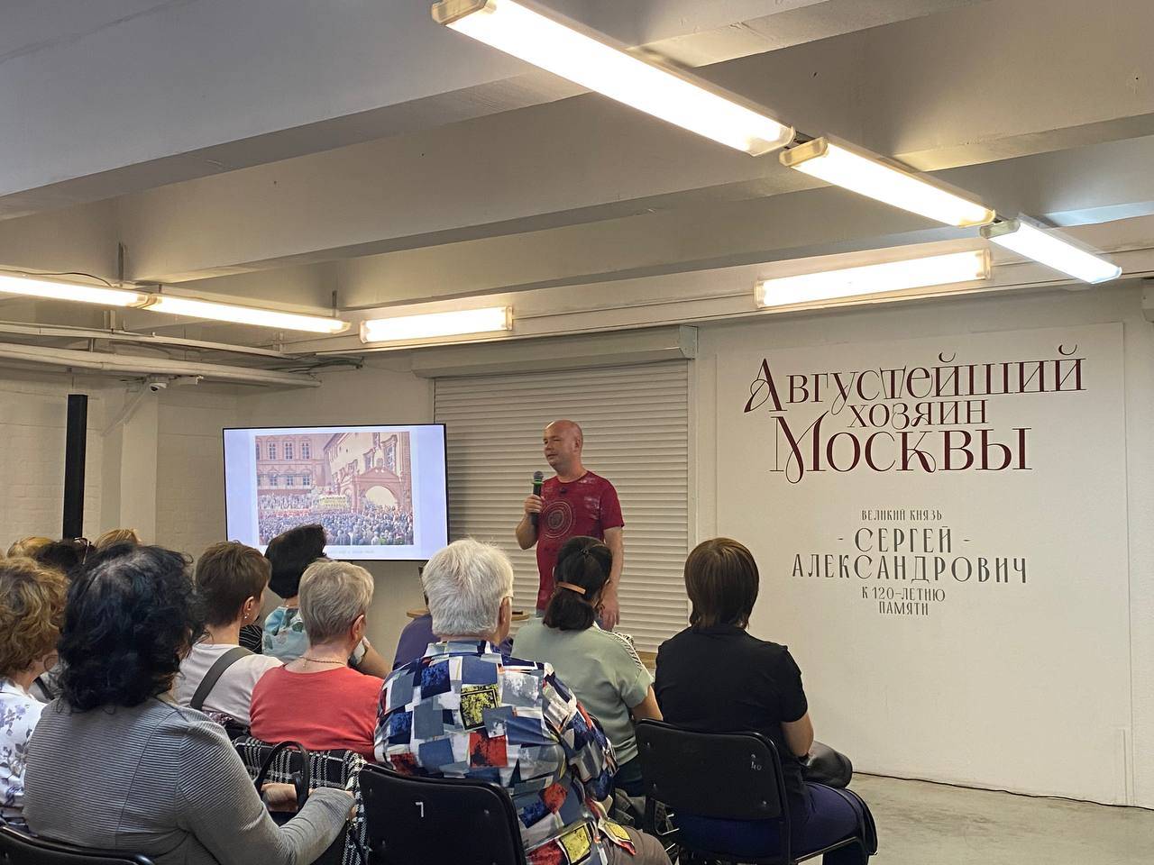 Лекция прошла в рамках выставочного проекта «Августейший хозяин Москвы», посвященного 120-летию памяти Московского генерал-губернатора, главнокомандующего войсками Московского военного округа, Председателя Императорского Православного Палестинского Общества Великого Князя Сергея Александровича.
