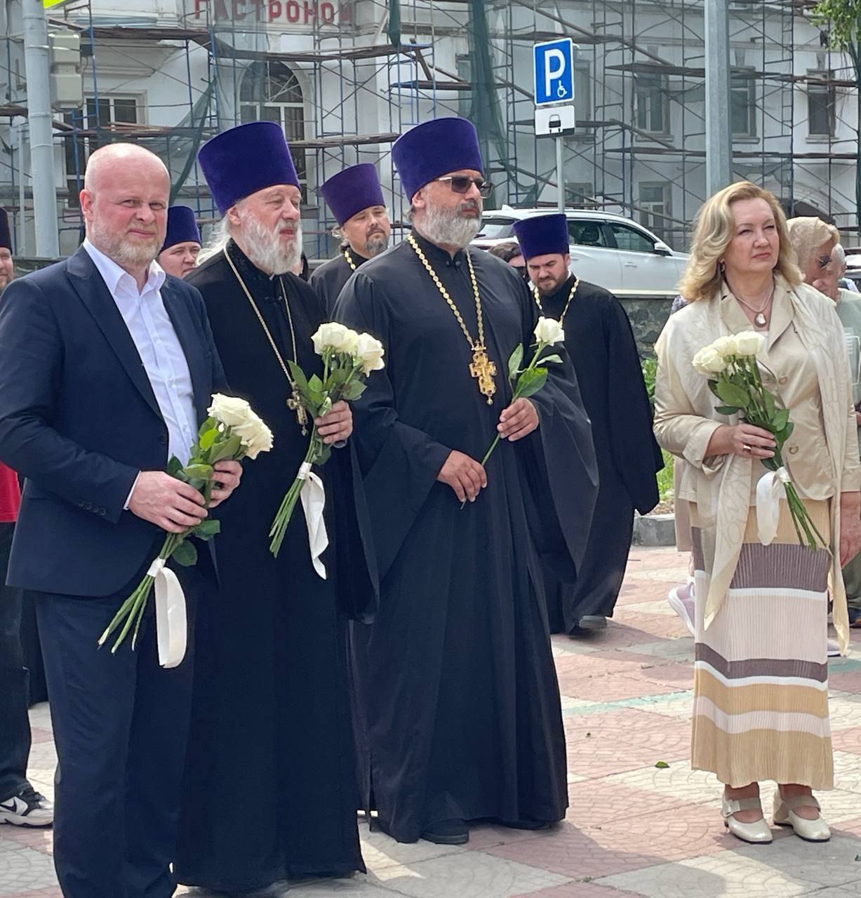Сначала состоялось возложение цветов к мемориальным доскам Великому Князю Михаилу Александровичу и его секретарю Н.Н. Жонсону, установленным на здании гостиницы «Королёвские номера», в которой они провели свои последние дни.