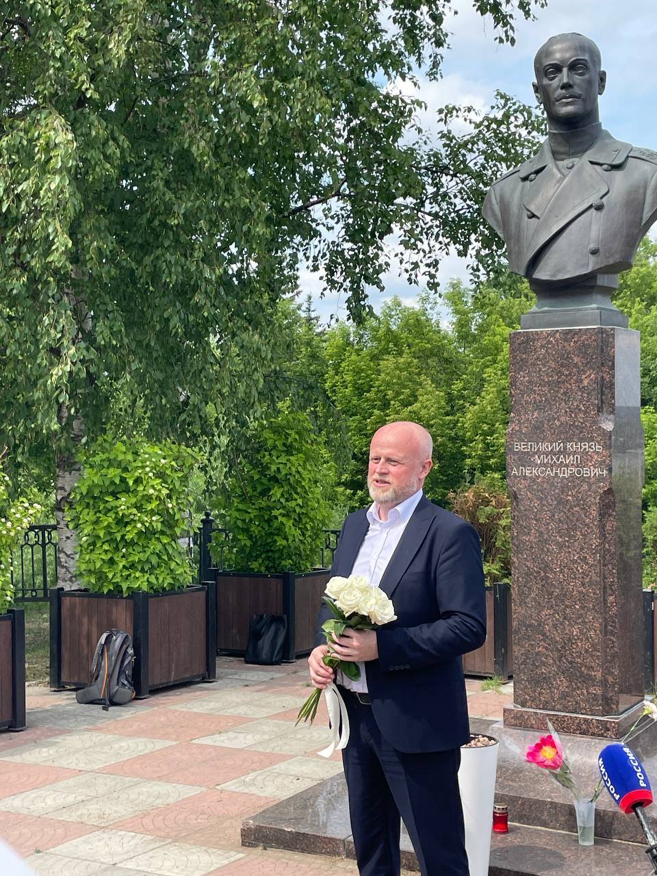 После этого участники мероприятия возложили цветы к памятнику Великому Князю Михаилу Александровичу, расположенному в сквере им. Решетникова. С приветственными словами к собравшимся обратились первый заместитель руководителя Администрации губернатора Пермского края Л.В. Политов; председатель Наблюдательного совета Фонда содействия возрождению традиций милосердия и благотворительности «Елисаветинско-Сергиевское просветительское общество» А.В. Громова; руководитель отдела религиозного образования и катехизации Пермской Епархии, первый проректор Пермской духовной семинарии, настоятель храма Святого Великомученика и Победоносца Георгия города Перми протоиерей Игорь Ануфриев; профессор, доктор исторических наук, профессор кафедры истории России с древнейших времен до начала ХХ века Института истории Санкт-Петербургского государственного университета Л.В. Выскочков; доктор исторических наук, профессор Николо-Угрешской духовной семинарии В.М. Лавров и кандидат исторических наук, старший научный сотрудник Центра архивных исследований Института востоковедения РАН, действительный член Императорского Православного Палестинского Общества М.И. Якушев.