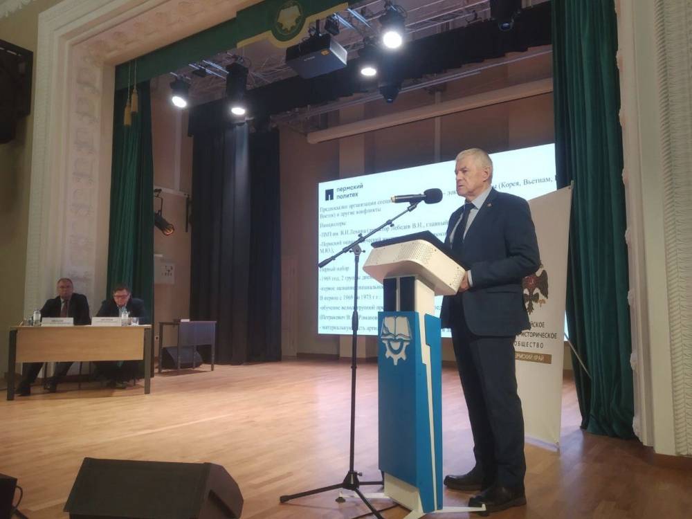Со вступительными словами к присутствующим обратились председатель Пермского регионального отделения Российского Военно-Исторического Общества, директор Пермского государственного архива социально-политической истории С. В. Неганов и директор Пермского политехнического колледжа им. Н. Г. Славянова А.Н. Попов.