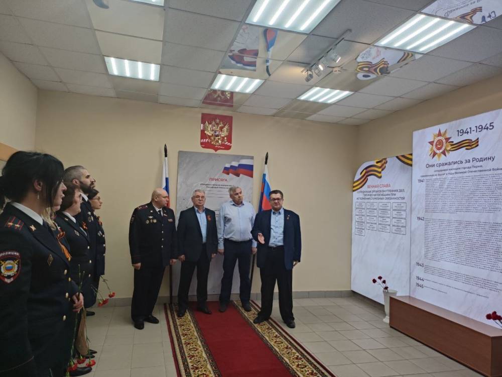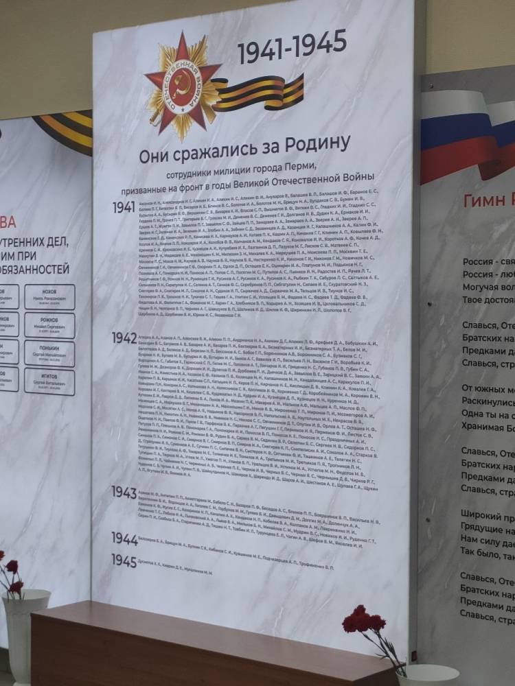 7 мая 2025 года в Управлении МВД России по городу Перми прошла торжественная церемония открытия мемориальной доски, посвященной сотрудникам милиции, принимавшим участие в Великой Отечественной войне. Всего на мемориальной доске увековечено 426 имен пермских милиционеров.