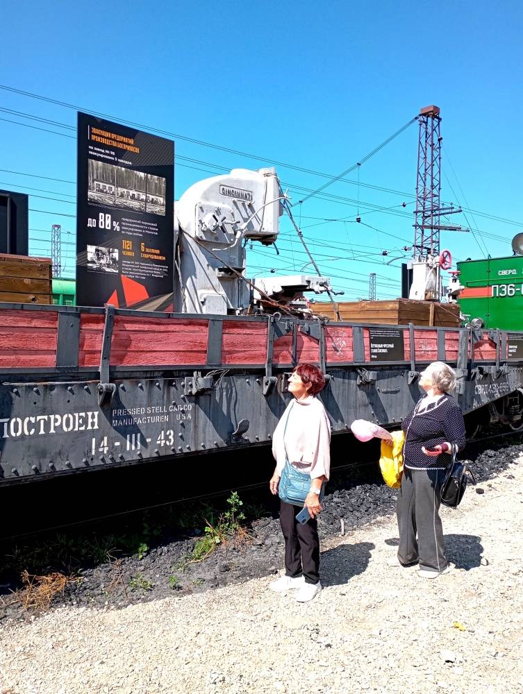 Крытый товарный вагон и грузовая платформа с промышленными станками – на платформе закреплены подлинные металлообрабатывающие станки периода Великой Отечественной войны. На планшетах и пилонах представлены экспозиции с материалами по эвакуации промышленных предприятий и населения оккупированных и прифронтовых регионов в Молотовскую область. Показана уникальная, основанная на архивных документах, статистика по количеству эвакуированных предприятий и населения, а также 20 фотодокументов того времени.