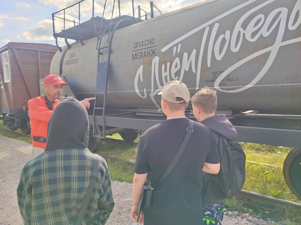 Цистерна горюче-смазочных материалов - подлинная цистерна, подготовленная в 1930-е годы в Брянске и перевозившая в годы войны химическую продукцию. На информационном пилоне представлена информация о нефтедобыче и нефтепереработке в Молотовской области в годы Великой Отечественной войны.