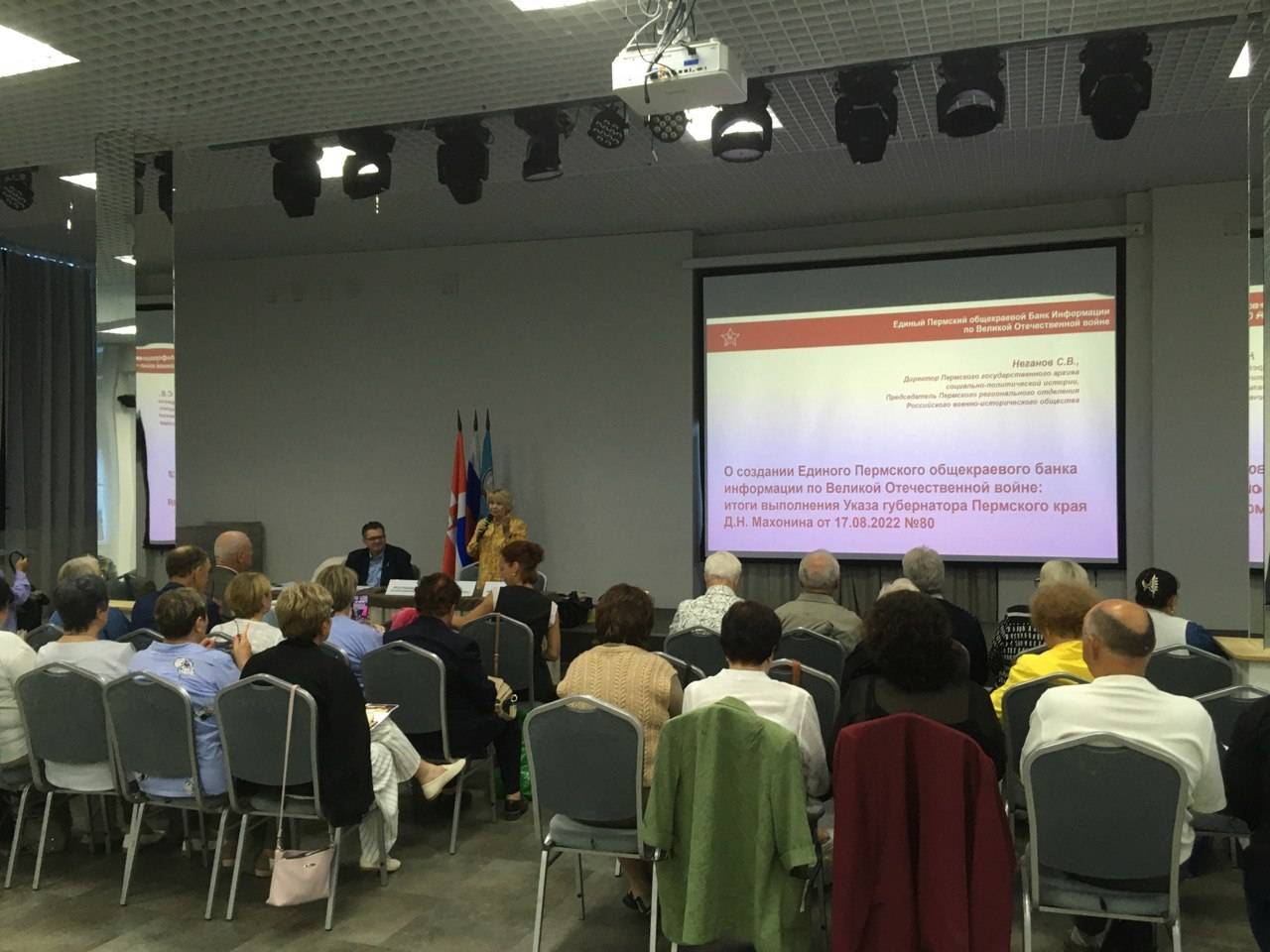 На мероприятии по приглашению организаторов выступил председатель Пермского регионального отделения Российского военно-исторического общества, директор Пермского государственного архива социально-политической истории С.В. Неганов. Он представил доклад «О создании Единого Пермского общекраевого банка информации по Великой Отечественной войне: итоги выполнения Указа губернатора Пермского края