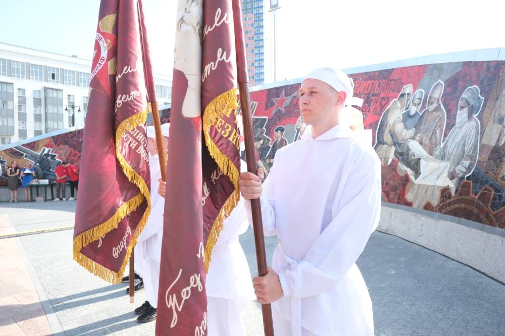Мероприятие началось с торжественного внесения Переходящих Красных Знамен Государственного Комитета Обороны, которые в годы Великой Отечественной войны были вручены шести лучшим пермским промышленным предприятиям на вечное хранение.