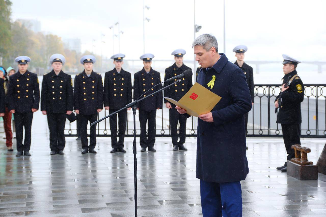 Затем приветственное слово от губернатора Санкт-Петербурга А.Д. Беглова зачитал глава Администрации Адмиралтейского района Санкт-Петербурга Д.В. Вакушин.