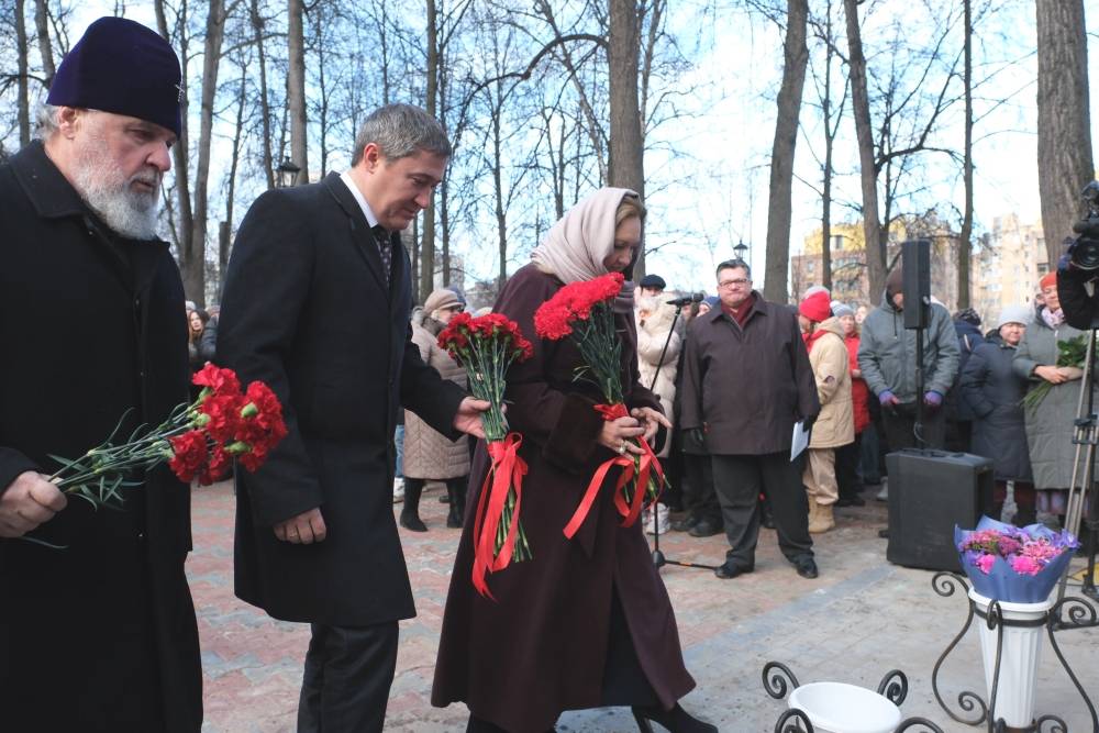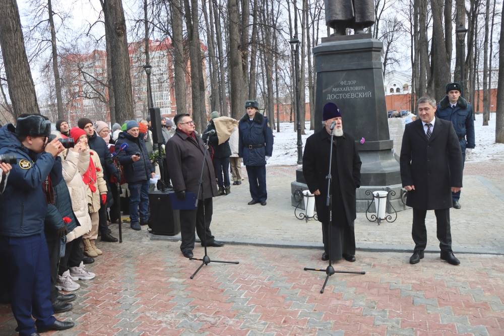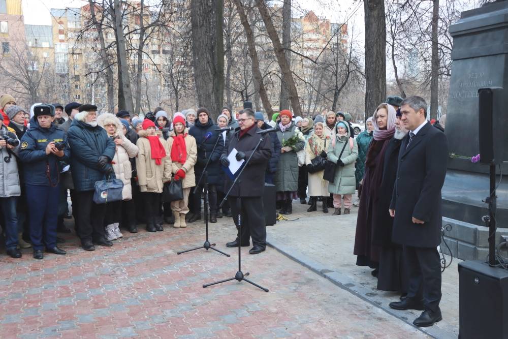 На торжественной церемонии открытия памятника с приветствиями выступили губернатор Пермского края Дмитрий Николаевич Махонин; Митрополит Пермский и Кунгурский Мефодий; председатель Наблюдательного совета Фонда содействия возрождению традиций милосердия и благотворительности «Елисаветинско-Сергиевское просветительское общество» Анна Витальевна Громова; председатель Пермского регионального отделения Российского общества Ф.М. Достоевского, доктор филологических наук, профессор Олег Иванович Сыромятников. Ведущим торжественной церемонии открытия был председатель Пермского регионального отделения РВИО, директор Пермского государственного архива социально-политической истории Сергей Васильевич Неганов.