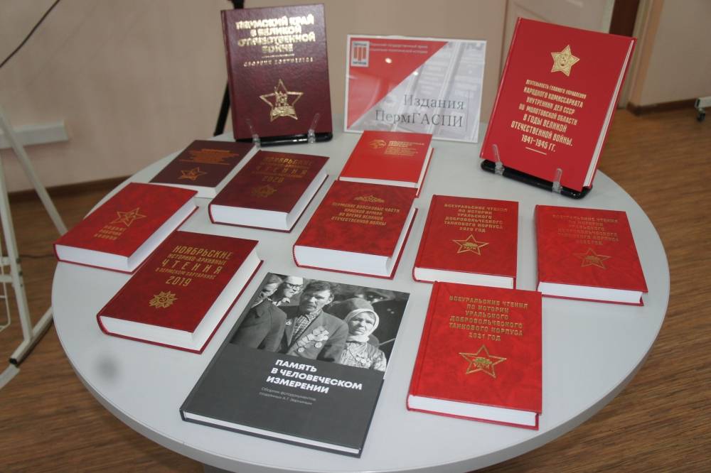 Для участников конференции была представлена выставка книжных изданий по теме Великой Отечественной войны. Экспонировалась передвижная выставка «Пермский край в Великой Отечественной войне». Выставка посвящена вкладу промышленных предприятий и жителей Прикамья в достижение Победы. Она рассказывает о стрелковых, артиллерийских, танковых, инженерных, авиационных и других частях Красной Армии. В экспозиции широко представлена военная продукция промышленных предприятий Молотовской области (Пермского края) и ее использование в различных родах войск в годы Великой Отечественной войны, а также представлены уникальные документы и фотографии, повествующие о трудовых и боевых подвигах пермяков в годы войны.