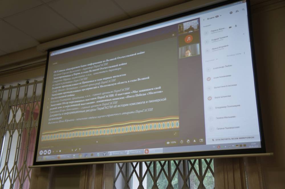 Основное внимание было уделено истории Великой Отечественной войны. Директор ПермГАСПИ, председатель Пермского регионального отделения Российского военно-исторического общества С.В. Неганов представил Единый Пермский общекраевой Банк Информации по Великой Отечественной войне.