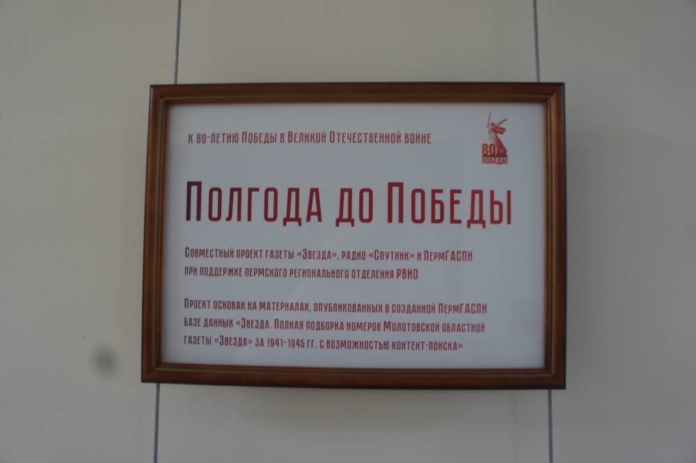 «Полгода до Победы» - это совместный проект газеты «Звезда», радио «Спутник» и ПермГАСПИ при поддержке Пермского регионального отделения Российского военно-исторического общества. В рамках проекта в газете «Звезда» публикуются заметки из номеров газеты периода Великой Отечественной войны. Публикации основываются на базе данных «Звезда. Полная подборка номеров Молотовской областной газеты «Звезда» за 1941–1945 гг. с возможностью контент-поиска», размещенной в открытом доступе в Едином Пермском Общекраевом Банке информации по Великой Отечественной войне»
