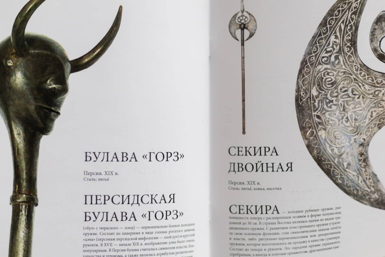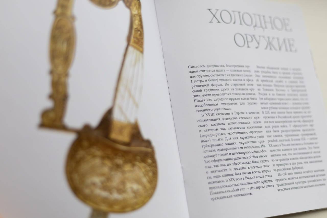 В каталоге представлена экспозиция выставки - художественное оружие XVIII-XX веков. Каждая страница подробно рассказывает об истории орудия, а качественные иллюстрацию помогают увидеть всё до мельчайших деталей.