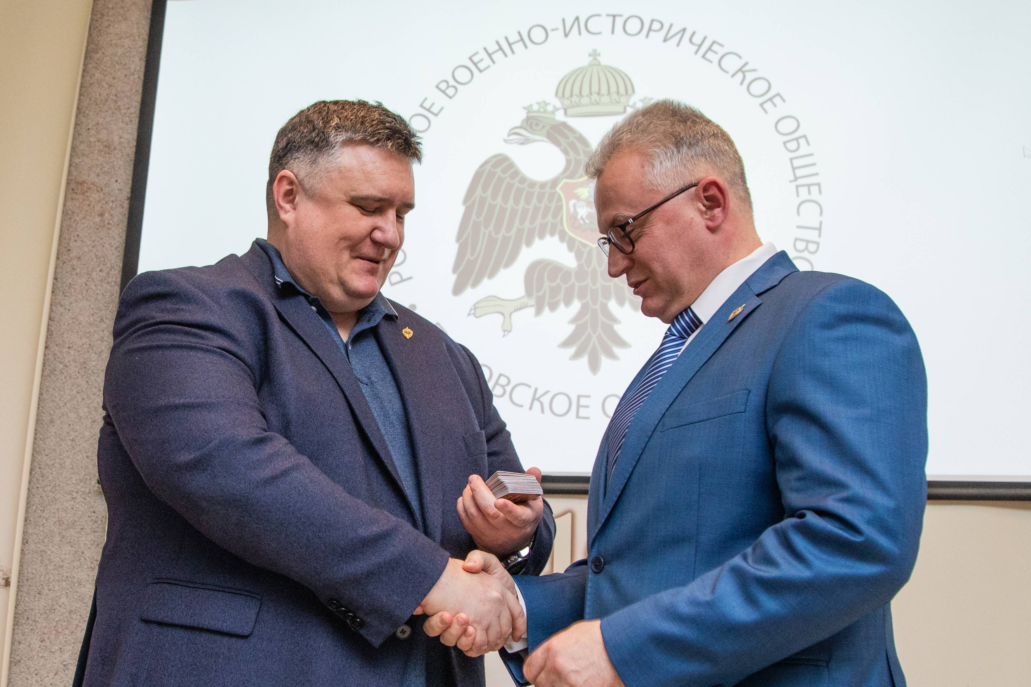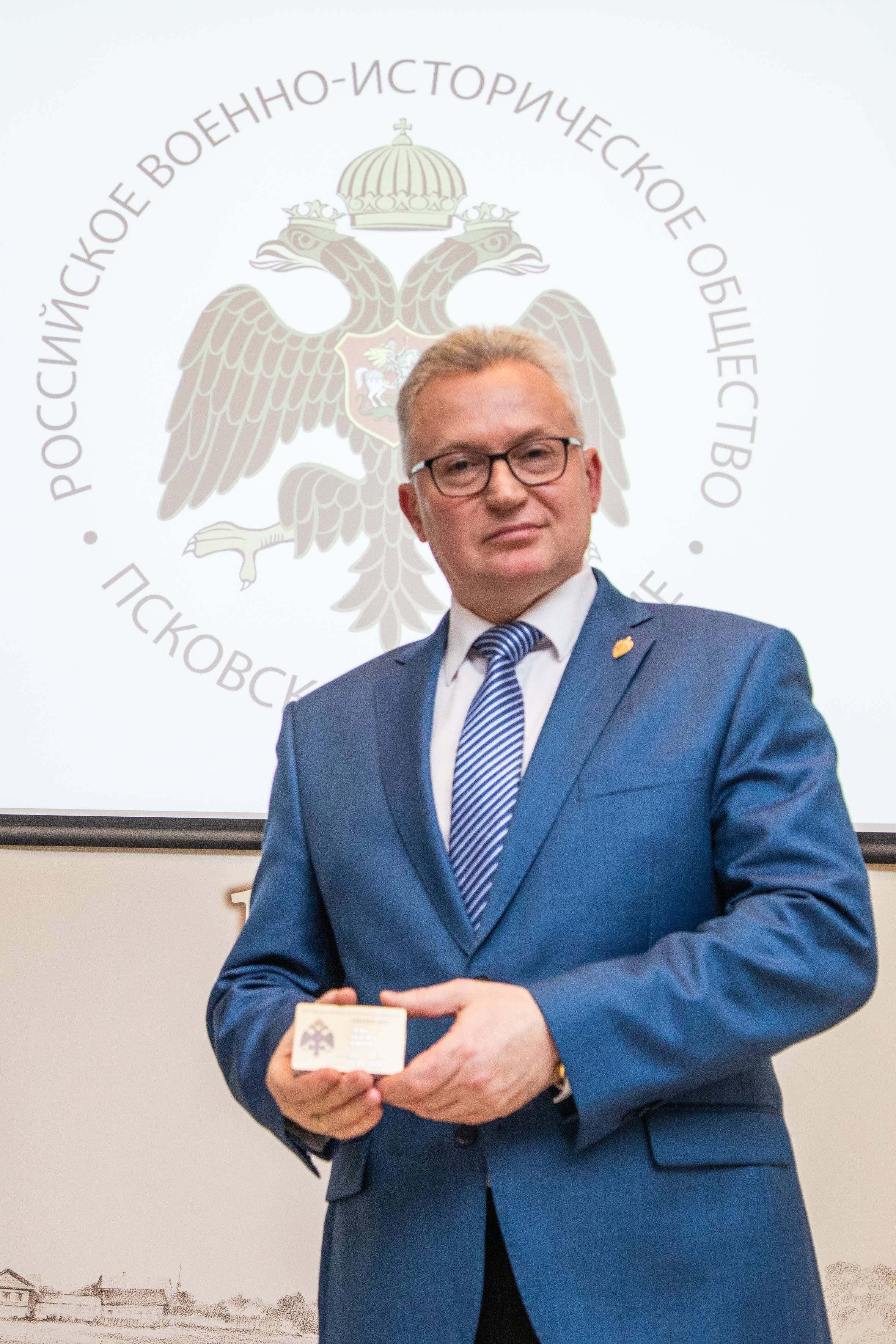 Руководитель регионального отделения Российского военно-исторического общества Александр Борисов вручил удостоверение и значок новому руководителю местного отделения РВИО – декану социально-гуманитарного факультета ВЛГАФК, сопредседателю Великолукского городского краеведческого общества, кандидату исторических наук, доценту, депутату Великолукской городской Думы Дмитрию Белюкову и пожелал плодотворной работы.