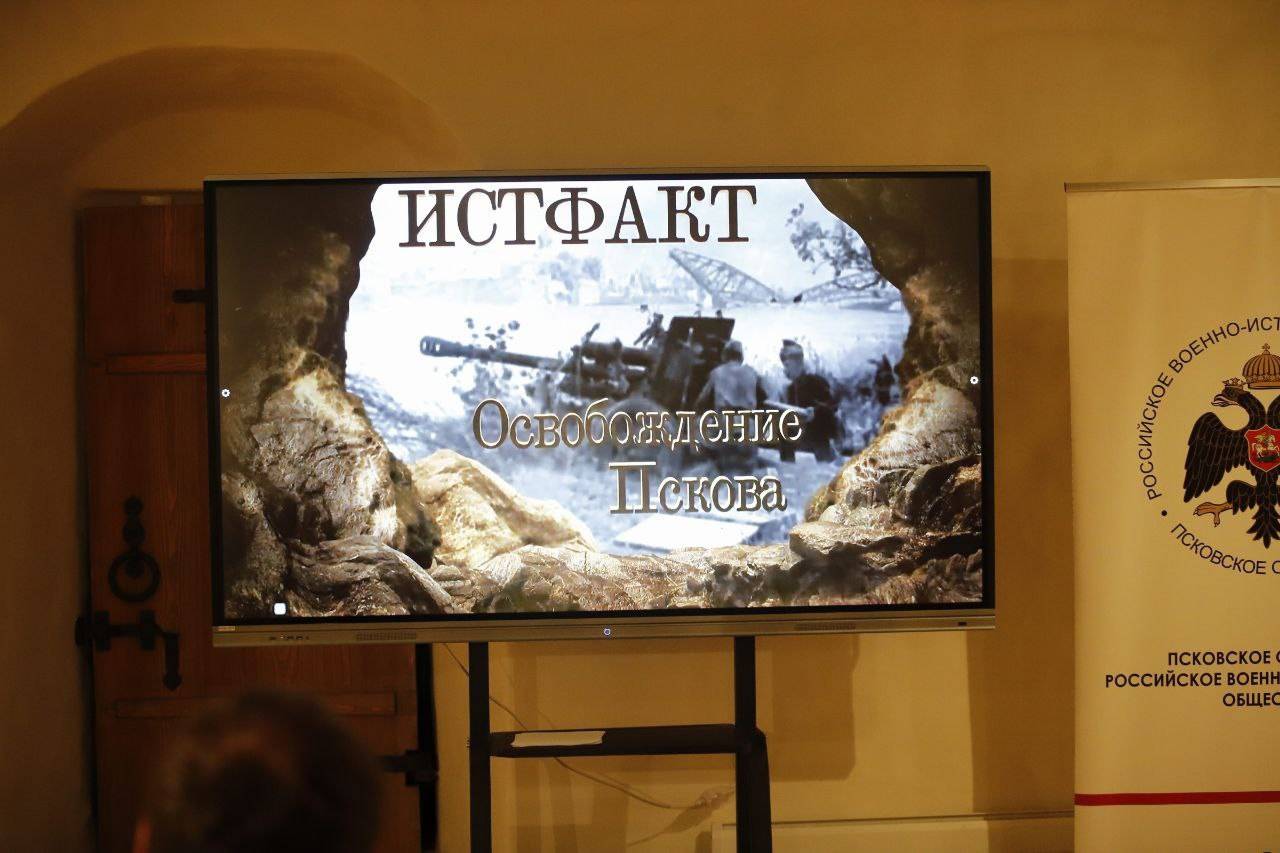 Присутствующим напомнили про историко-познавательный проект «ПЛН ТВ» – «Истфакт» (создается при поддержке регионального отделения РВИО). О том, как закончилась самая продолжительная в истории оккупация Пскова, начавшаяся уже на 18-й день Великой Отечественной войны, вспомнили участники встречи, просмотрев выпуск программы «Истфакт. Освобождение Пскова в 1944 году».