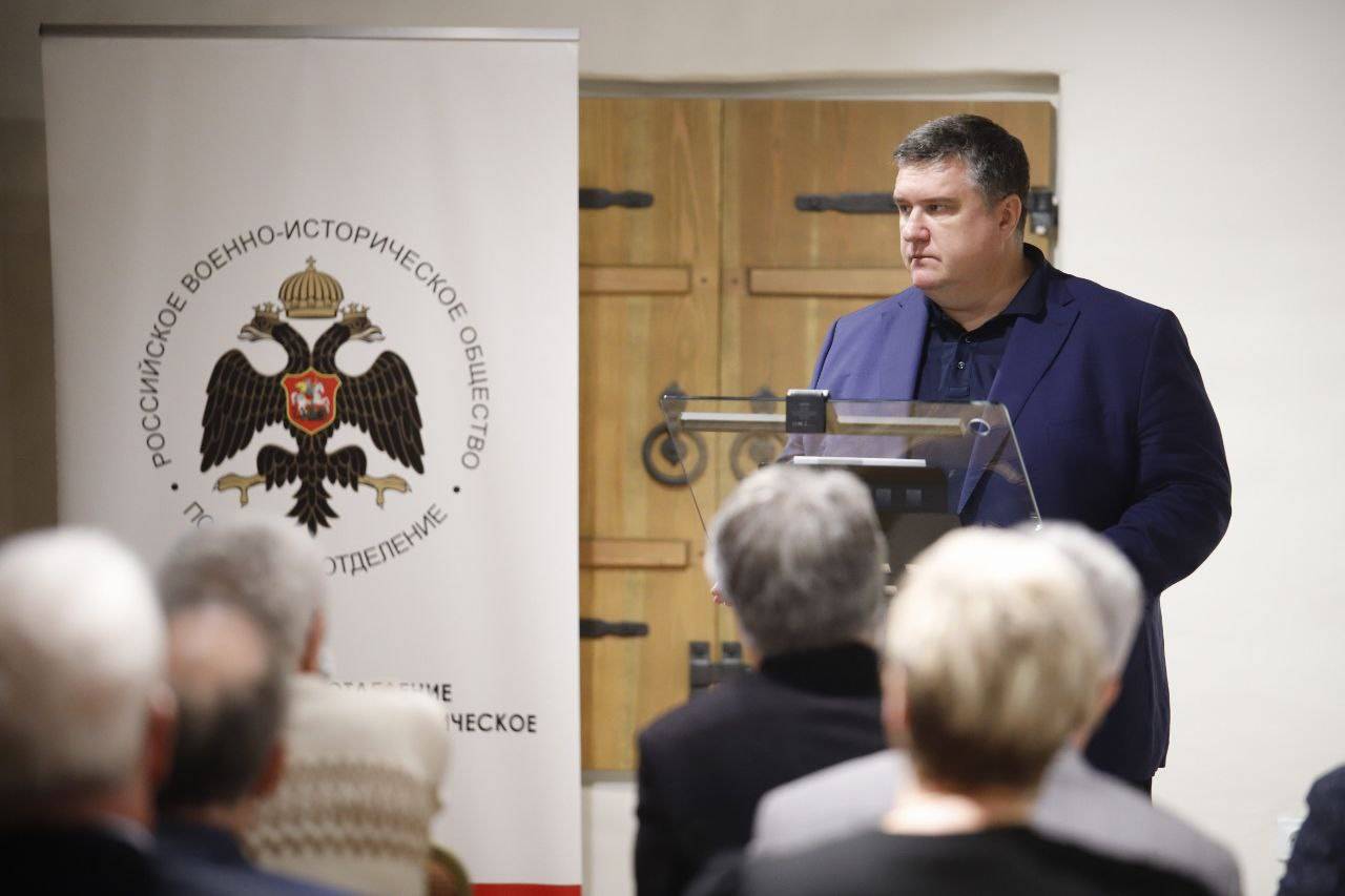 С приветственным словом к участникам круглого стола обратился руководитель Псковского регионального отделения Российского военно-исторического общества Александр Борисов.