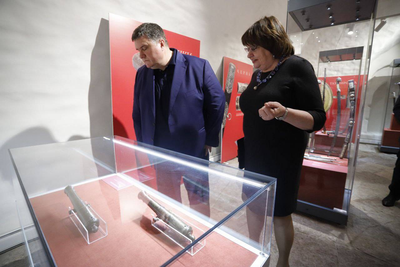 Александр Борисов напомнил, что Псковское региональное отделение РВИО поддержало проект Псковского музея заповедника — выставку оружия разных эпох «Блеск стали».