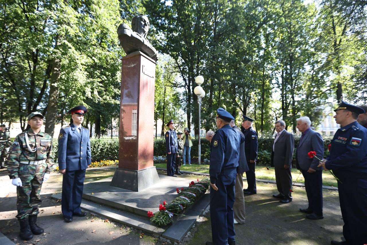 В завершение мероприятия собравшиеся возложили к бюсту полководца Михаила Кутузова гирлянду славы и цветы.