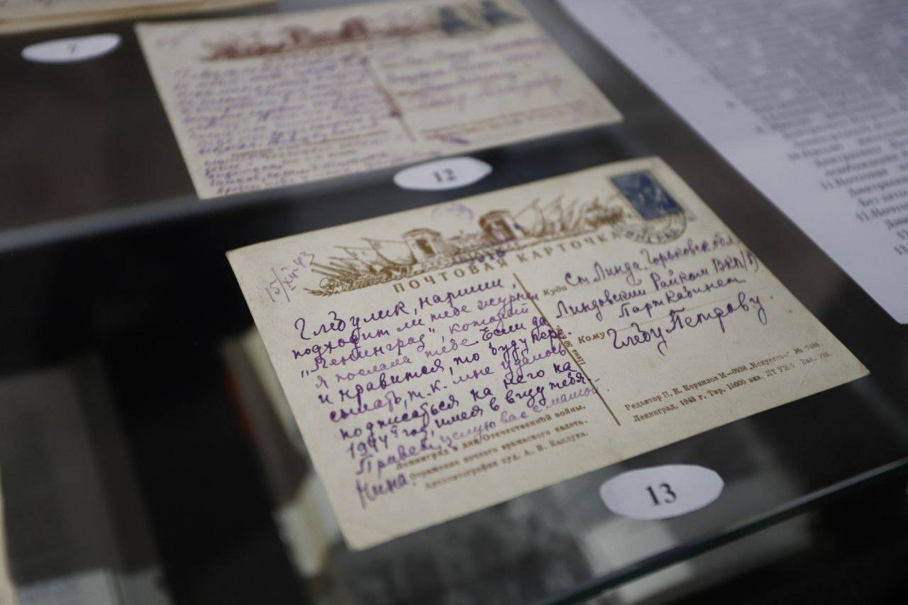 В состав экспозиции легли документы, хранящиеся в фондах Государсвенного архива Псковской области. Через фотографии, открытки, воспоминания и письма к родным по крупицам восстанавливаются детали блокады.
