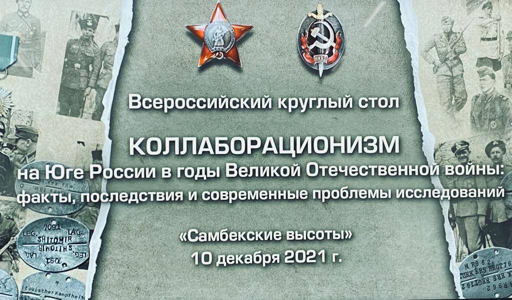 В конференц-зале Народного военно-исторического комплекса Великой Отечественной войны «Самбекские вы-соты» состоялось заседание всероссийского круглого стола на тему «Коллаборационизм на юге России в годы Великой Отечественной войны: факты, последствия и современные мероприятия выступила Автономная некоммерческая орга-низация «Военно-исторический центр в Южном округе» совместно с поисковым объединением «Миус-фронт» при содействии Фонда президентских грантов. В работе кругло-го стола приняли участие учёные-историки из Москвы, Санкт Петербурга, Ростова-на-Дону, Ростовской области, Волгограда, Симферополя, Пятигорска и Луганска.