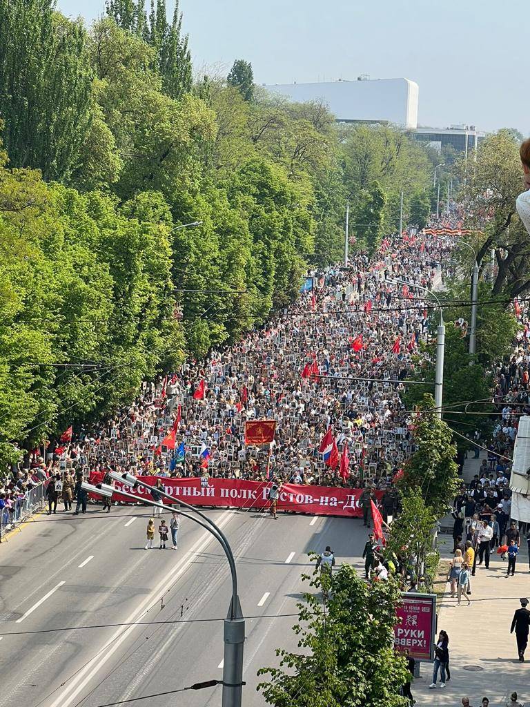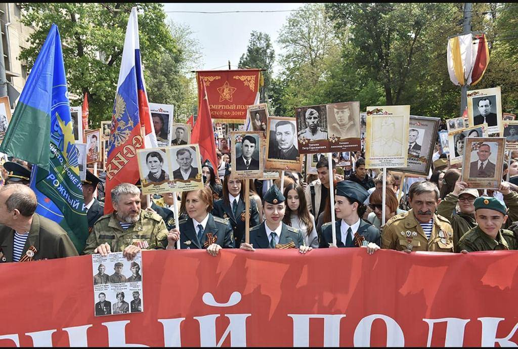 Как и по всей нашей стране в Ростове-на-Дону 9 мая состоялось шествие «Бессмертного полка». В организации его проведения непосредственное участие приняли члены РРОО РВИО. Возглавили его колонну представители ростовских военно-исторических клубов в обмундировании бойцов РККА на боевой технике времён Великой Отечественной войны, которая была найдена на местах боёв и восстановлены руками энтузиастов-реконструкторов событий боевого прошлого нашей страны. Они вышли на главную площадь Южной столицы, Театральную, сразу же после прохождения парадных расчётов военнослужащих ЮВО. Кроме того члены РРОО РВИО весь день трудились не покладая рук на городских интерактивных площадках, где рассказывали посетителям о событиях Великой Отечественной войны, а также проводили экскурсии по местам боёв почти восьмидесятилетней давности.