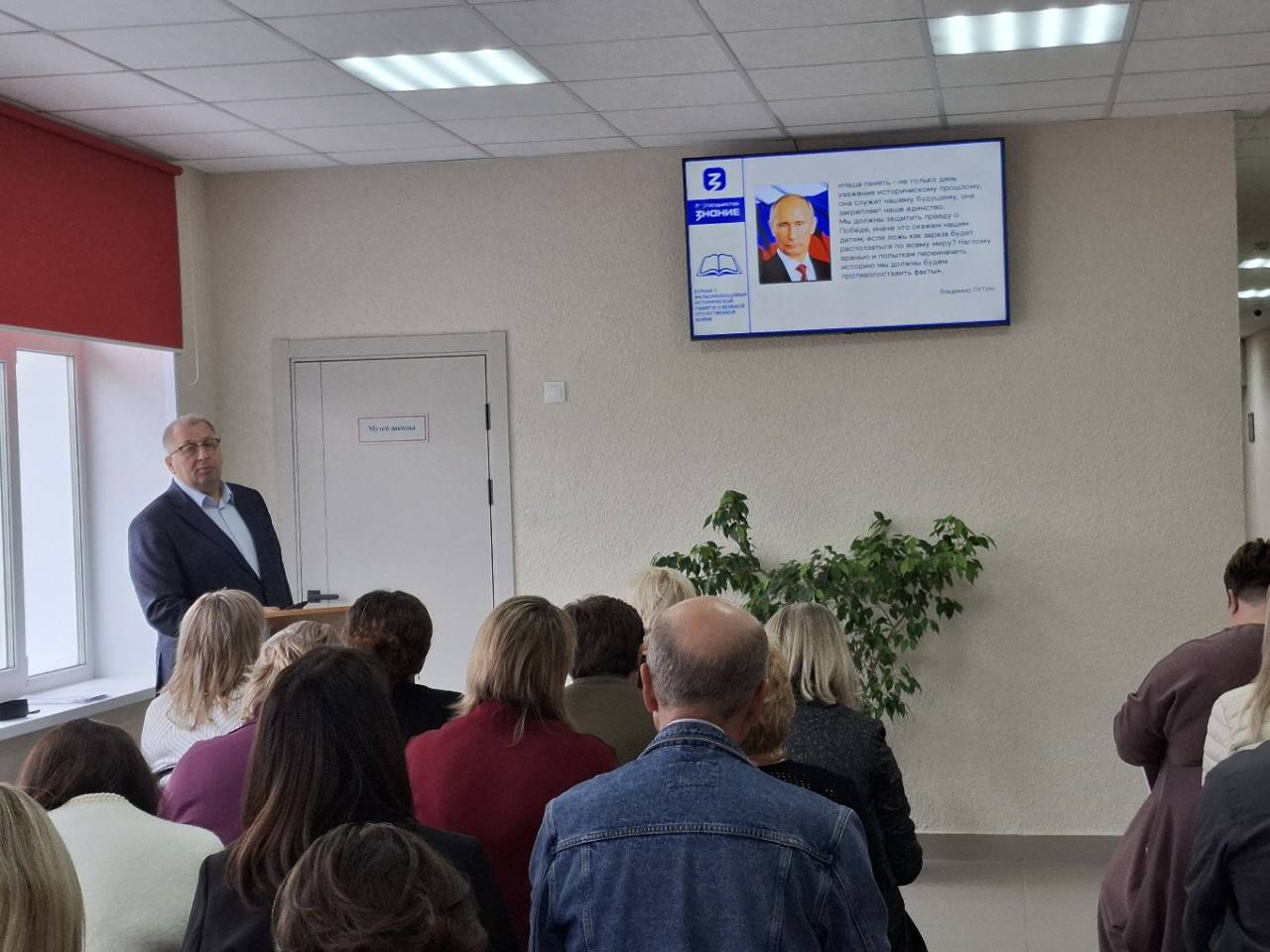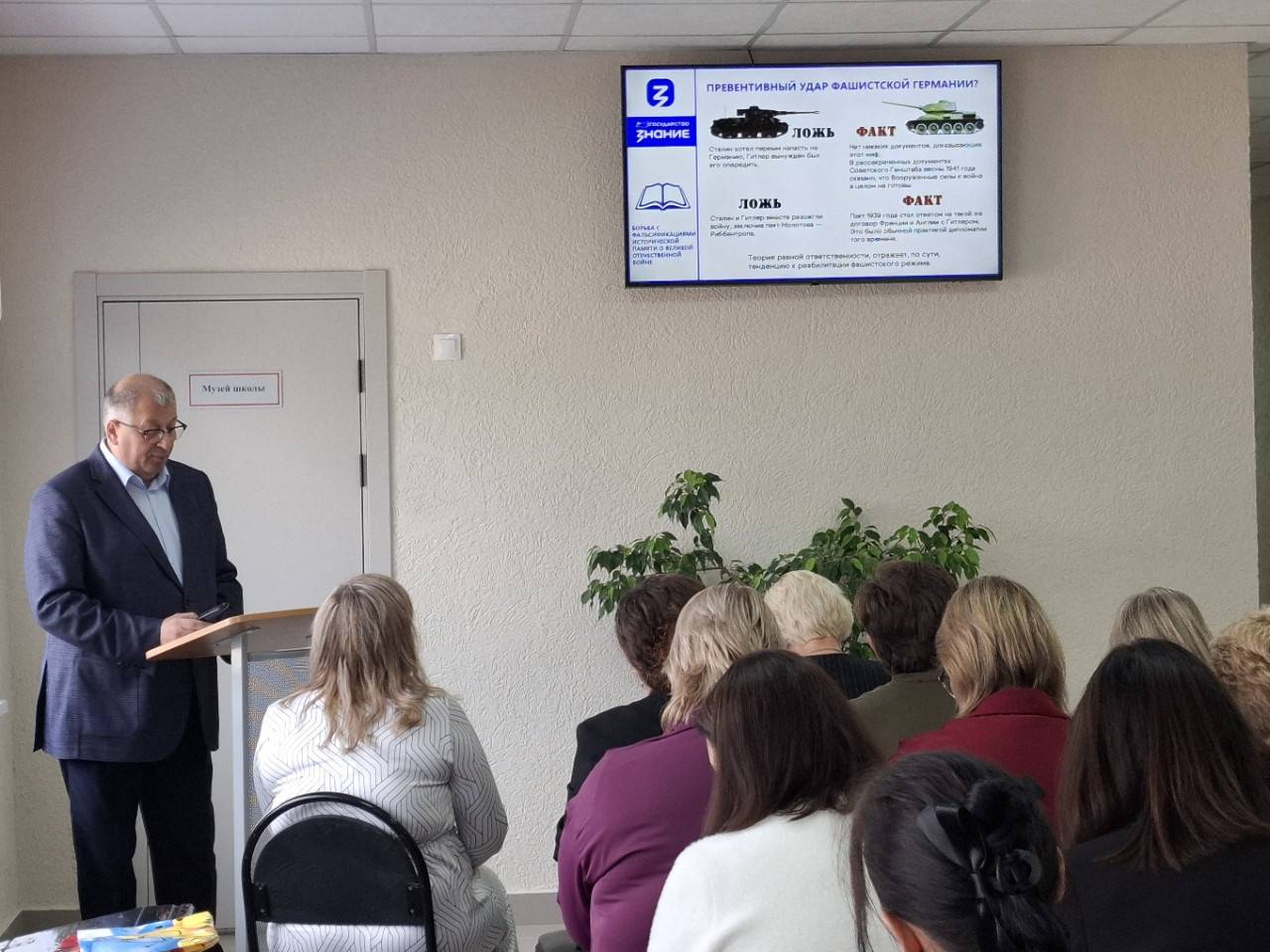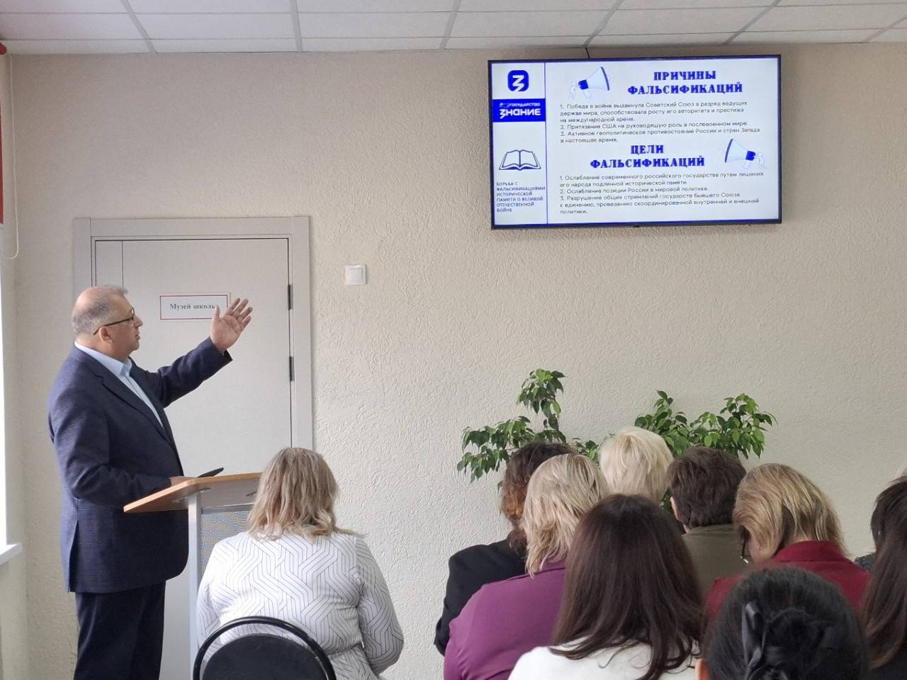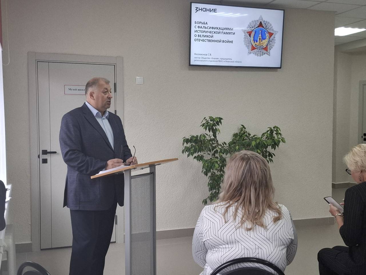 29 августа в школе №1 г.Рыбное прошла лекция «Борьба с фальсификациями исторической памяти о Великой Отечественной войне», ориентированная на директоров школ и сотрудников детских садов района. Мероприятие было организовано с целью повышения квалификации педагогического состава в вопросах противодействия искажению исторических фактов о Великой Отечественной войне.