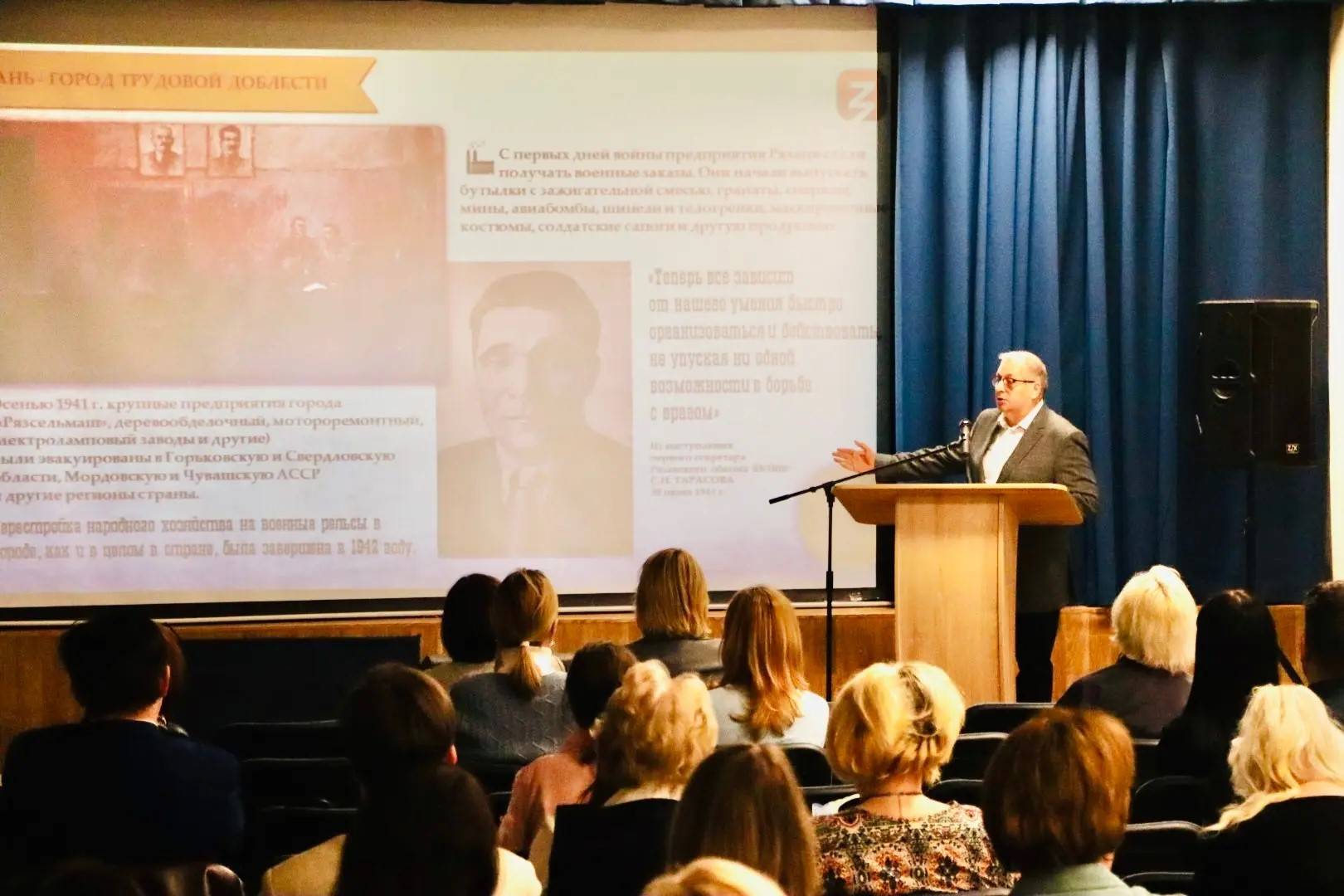 Образовательная программа уроков включает в себя рассказ о вкладе жителей Рязани в оборонную промышленность, сельское хозяйство и другие отрасли, работавшие в интересах фронта. 🗓14 апреля в МБОУ «Школа №3 «Центр развития образования» состоялась лекция «Рязань город трудовой доблести», лектором которой выступил Сергей Филимонов - директор ГКУ РО «Дом общественных организаций», председатель регионального отделения РВИО, член Союза краеведов России.
