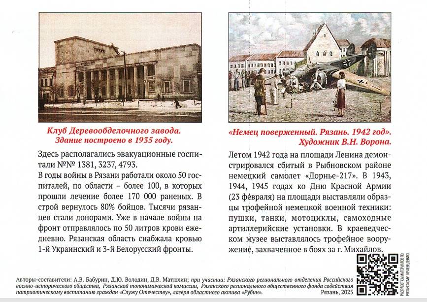 Маршруты включают оборонительные сооружения, предприятия по выпуску изделий для фронта, эвакогоспитали и другие знаковые места, о которых можно прочитать в путеводителях, погружаясь в обстановку города военного времени. Информацию составители добывали в архивах, исторических документах, из бесед с очевидцами. Такая объемная краеведческая работа проведена впервые.