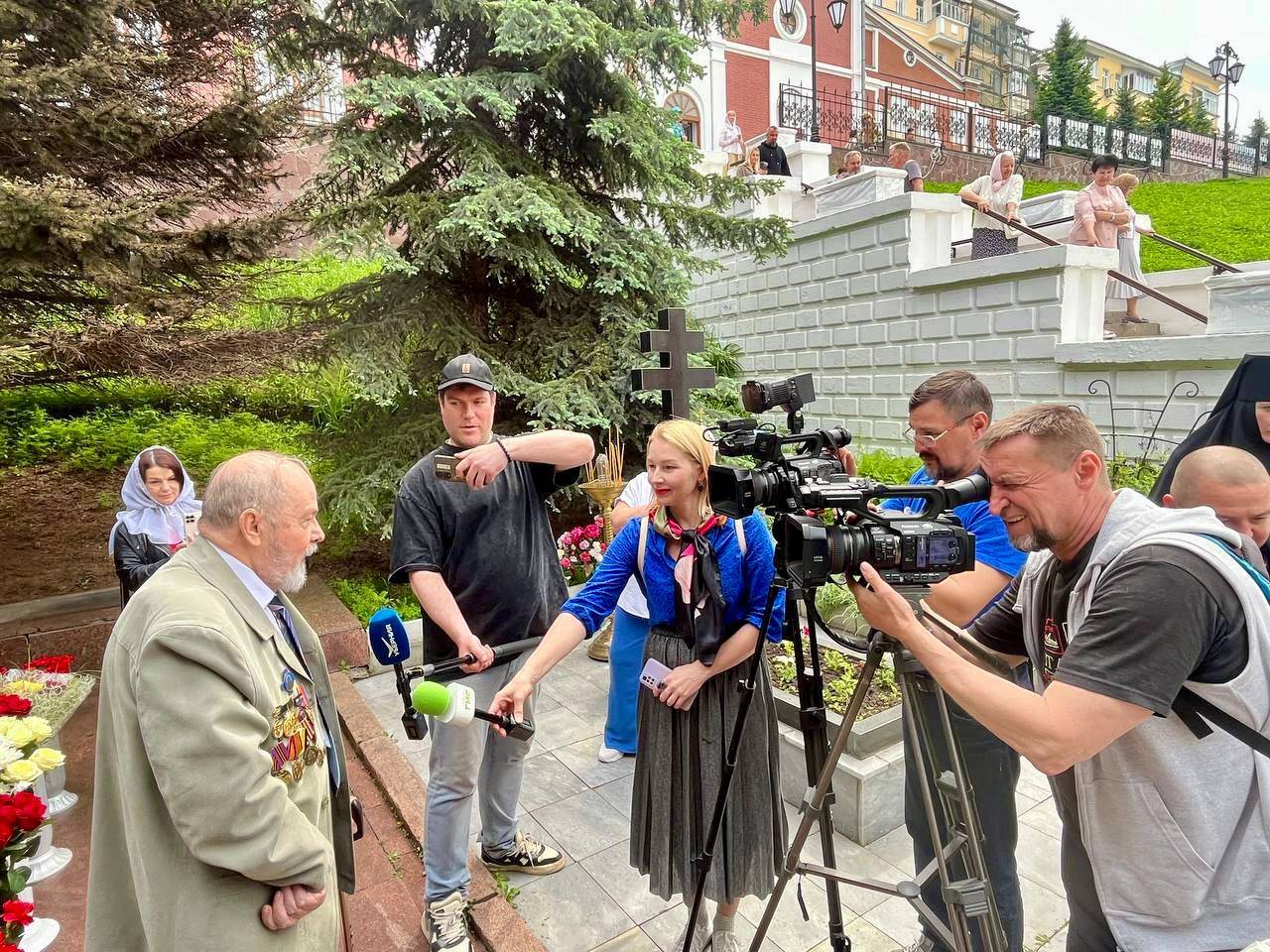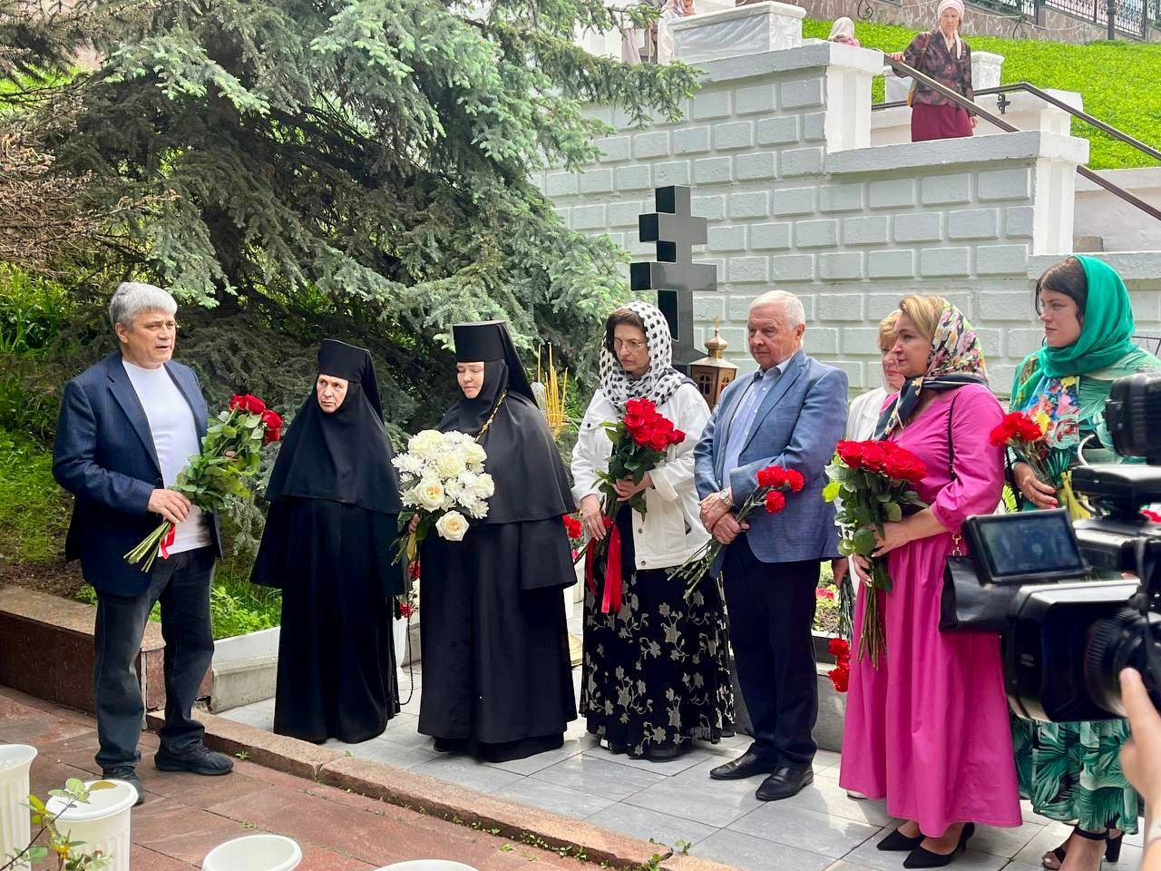 Далее состоялось возложение цветов к могиле Самарского городского главы Петра Владимировича Алабина и его супруги Варвары Васильевной, инициаторов создания Самарского знамени.
