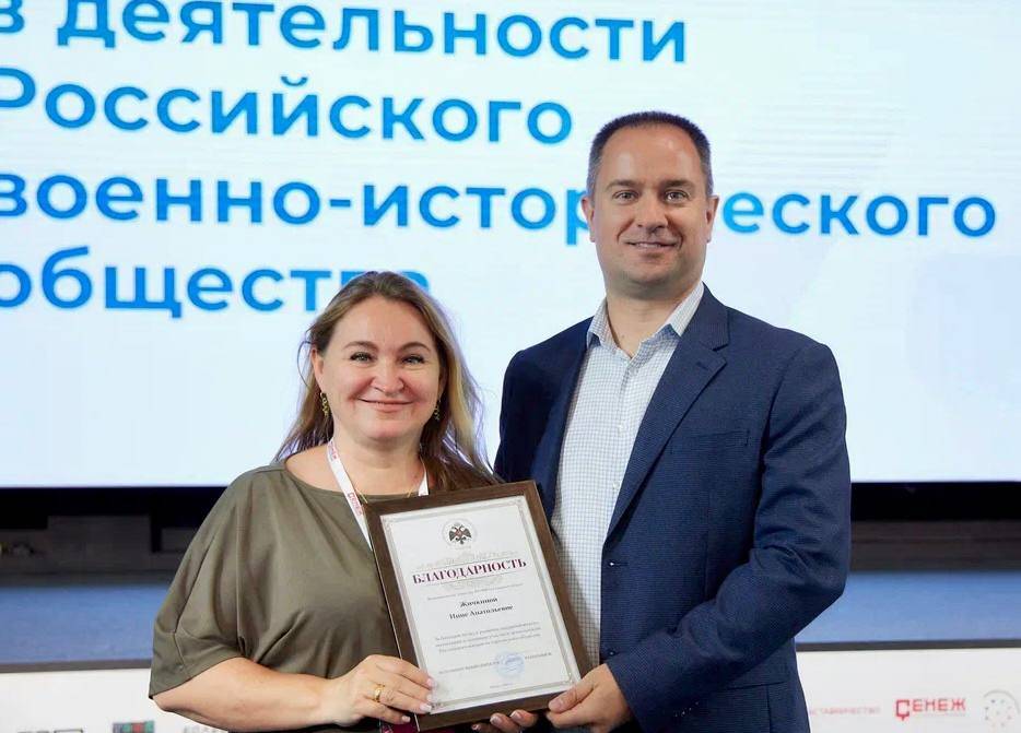 Исполнительный директор РО РВИО в Самарской области Инна Жичкина награждена благодарностью Российского военно-исторического общества «За большой вклад в развитие патриотического воспитания и активное участие в деятельности Российского военно-исторического общества».