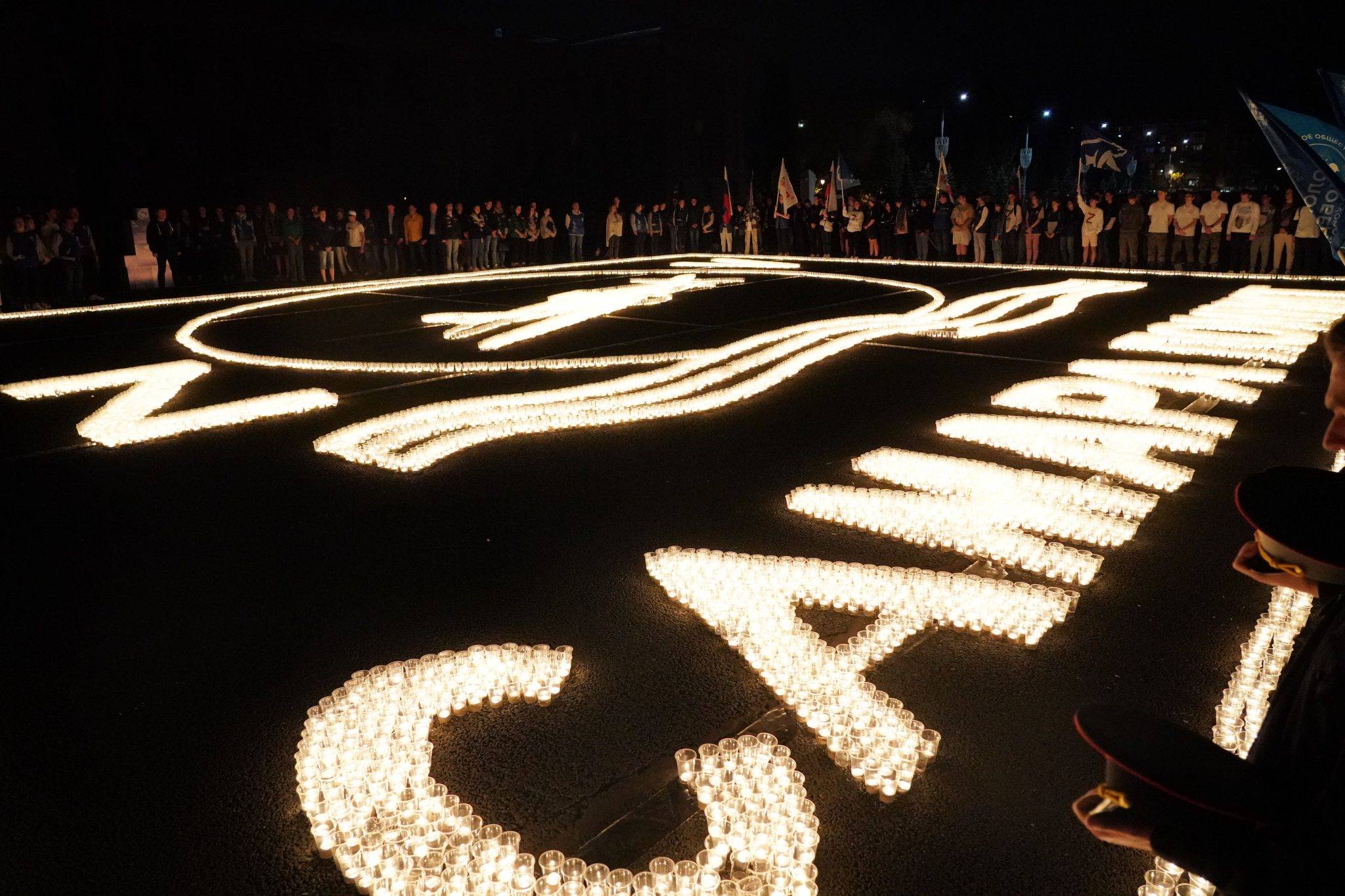 В ночь с 21 на 22 июня на пл. Куйбышева волонтеры создали "Огненную картину войны". Легендарный Ил-2 и слова "Самара помнит" выложили из 30 тыс. свечей. Вместе с земляками в акции принял участие Дмитрий Азаров.
