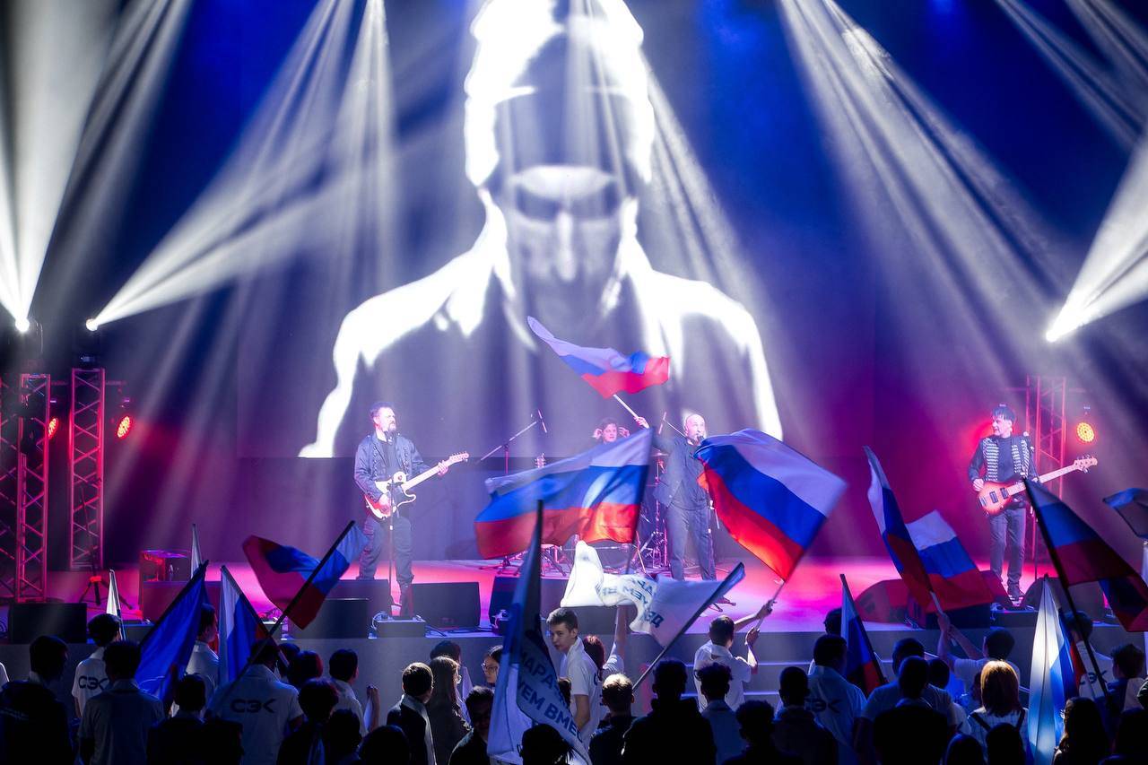 В едином порыве с участниками прозвучали патриотические хиты в исполнении заслуженного коллектива народного творчества Российской Федерации, многократного участника акций по отправке и сопровождению гуманитарных грузов в зону проведения специальной военной операции группы «Музыкальный центр Автоклуб», молодёжного эстрадного хора под руководством Ксении Плаксиной и хедлайнера митинга - концерта, активного участника крупных рок-фестивалей, гражданских и патриотических акций, регулярно совершающего поездки с выступлениями в Донецке, Горловке, Луганске, Ясиноватой и других городах Донбасса, участника Форумов Министерства обороны Российской Федерации, многолетних друзей авиационных групп высшего пилотажа ВВС России «Стрижи» и «Русские витязи» рок-группы ЗВЕРОБОЙ!