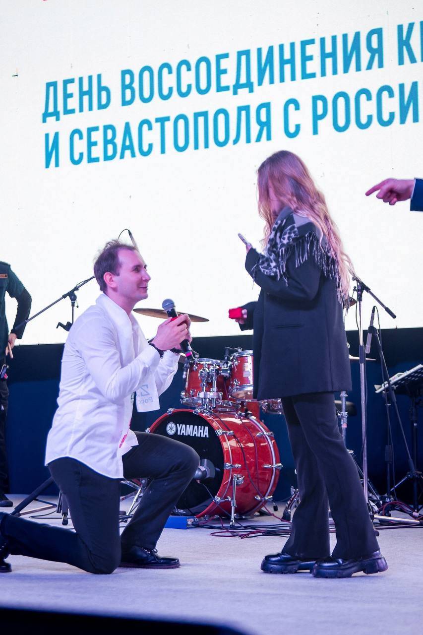 Приятным сюрпризом для всех стало желание одного из молодых людей сделать в атмосфере Крымской весны предложение со сцены своей возлюбленной. Мы дали возможность осуществиться этому чуду рождения новой семьи у всех на глазах!