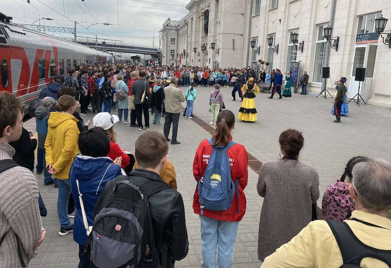 На перроне железнодорожного вокзала путешественников ждала яркая праздничная программа — гостей встречал ансамбль казачьей песни «Лазоревый цветок». Распределять потоки путешественников помогали волонтеры в сфере туризма и гостеприимства.