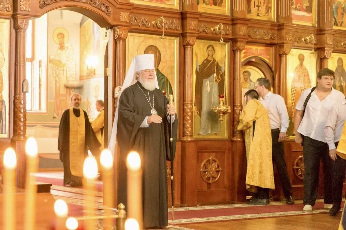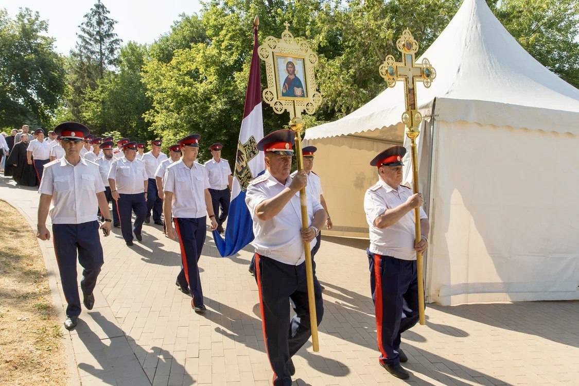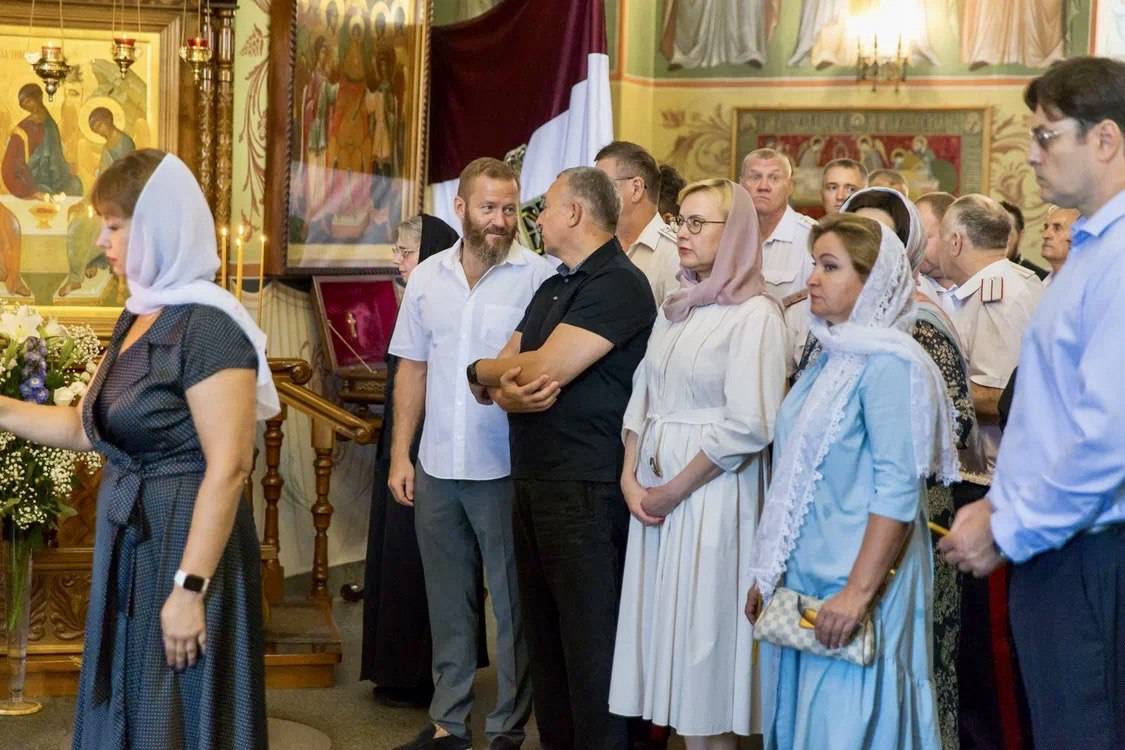 - торжественный молебен, который провёл митрополит Самарский и Новокуйбышевский Сергий, в Иверском женском монастыре, монахини которого вышили в конце XIX века легендарное знамя;