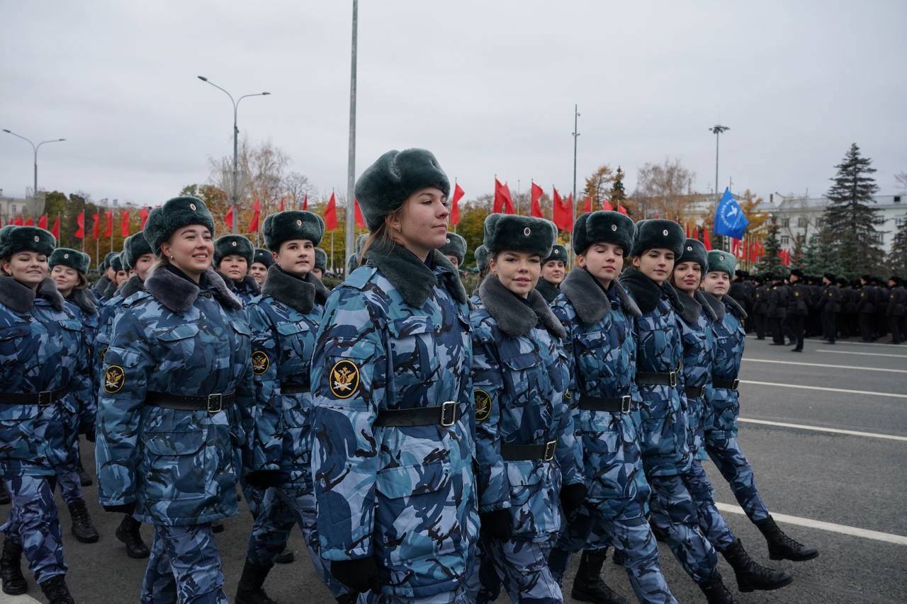 Стройным маршем по площади Куйбышева прошли парадные расчеты силовых структур, ветеранских и патриотических общественных организаций, военных учебных центров, промышленных и оборонных предприятий, высших учебных заведений, кадетских классов, юнармейских отрядов из разных регионов Российской Федерации.
