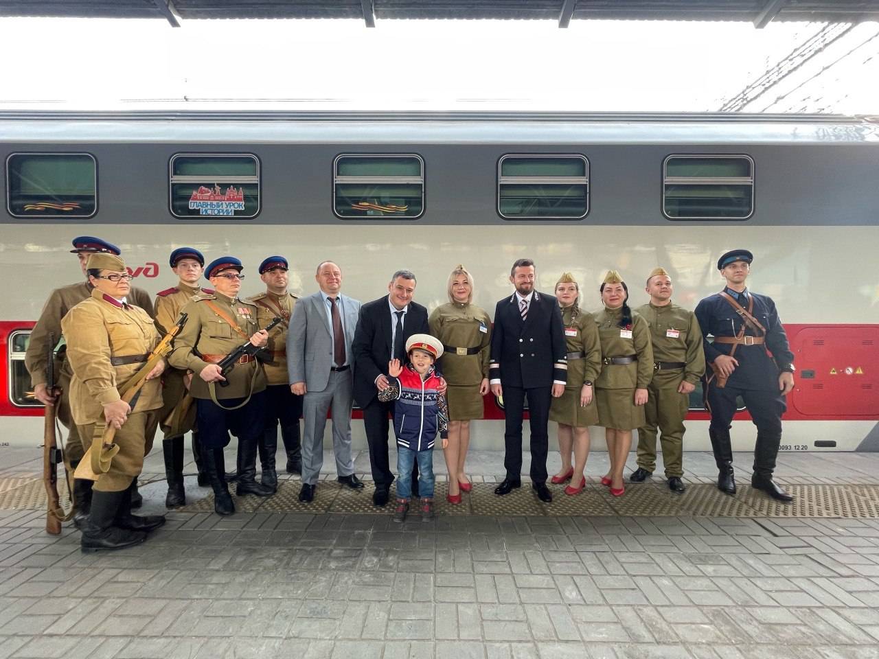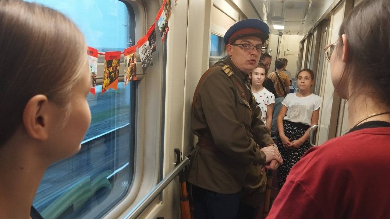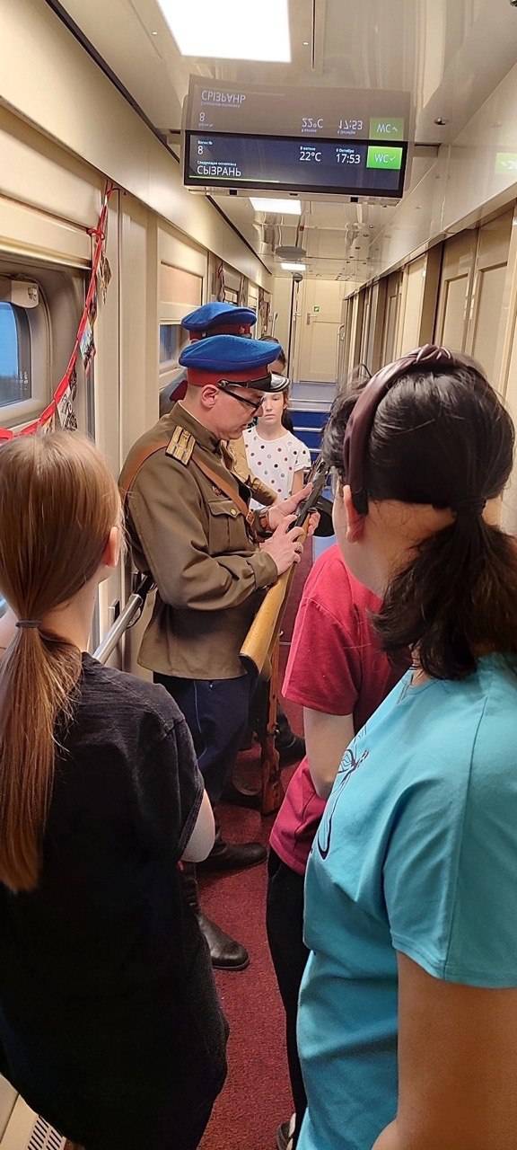 В пути следования реконструкторами (членами РВИО) по всем вагонам были организованы «живые уроки истории», на которых ребятам продемонстрировали оружие солдат Рабоче-крестьянской Красной армии, обмундирование и предметы быта. Особое внимание было уделено подвигу Русского солдата, Параду 7 ноября 1941 года в запасной столице Куйбышеве, работе эвакуированных предприятий в годы Великой Отечественной войны.
