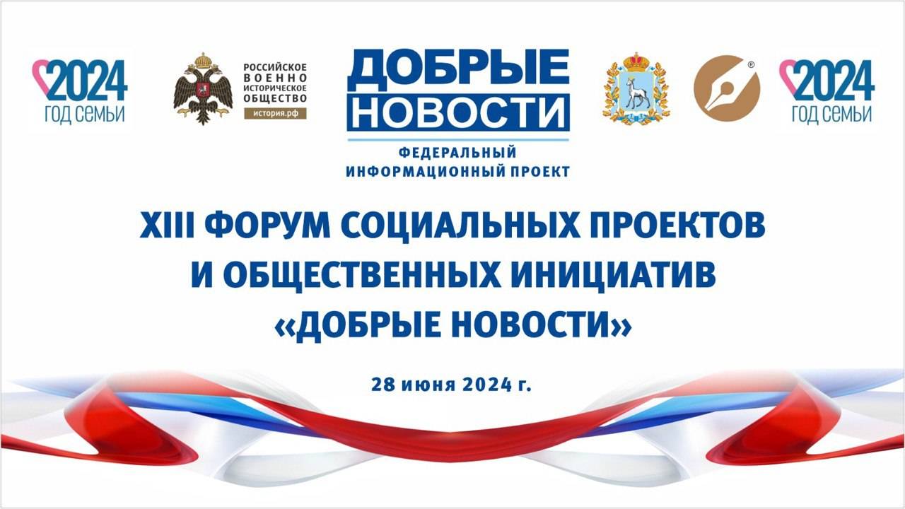 Сегодня 28 июня в 15:00 в учебно-спортивном центре «Грация» (г. Самара, ул. Физкультурная, 116) в рамках федерального информационного проекта «Добрые новости» состоится XIII Форум социальных проектов и общественных инициатив «Добрые Новости».