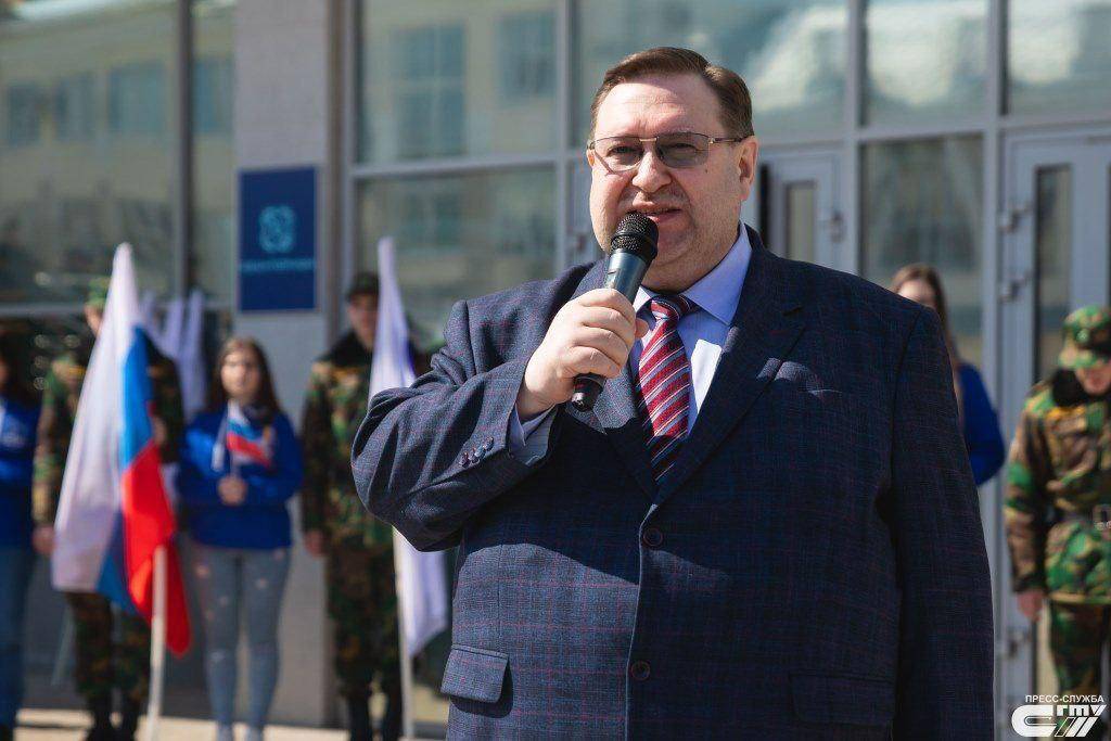 С приветственной речью к присутствующим и словами поддержки к студенческой молодежи обратился и.о. ректора СГТУ, доктор исторических наук, профессор, председатель реготделения «Российского военно-исторического общества» Сергей Наумов: «Сегодня, в этот поистине знаковый день, коллектив, студенты крупнейшего и старейшего технического университета со славной 90-летней историей поддержали действия Президента России, Верховного Главнокомандующего Вооруженными Силами Российской Федерации Владимира Владимировича Путина по проведению специальной военной операции на Украине. Уверен, что все цели, которые поставил наш глава государства, будут выполнены – Донбасс станет свободным, счастливым и благополучным. Люди, проживающие там, наконец-то смогут спокойно спать, работать, растить детей, любить и радоваться жизнью».