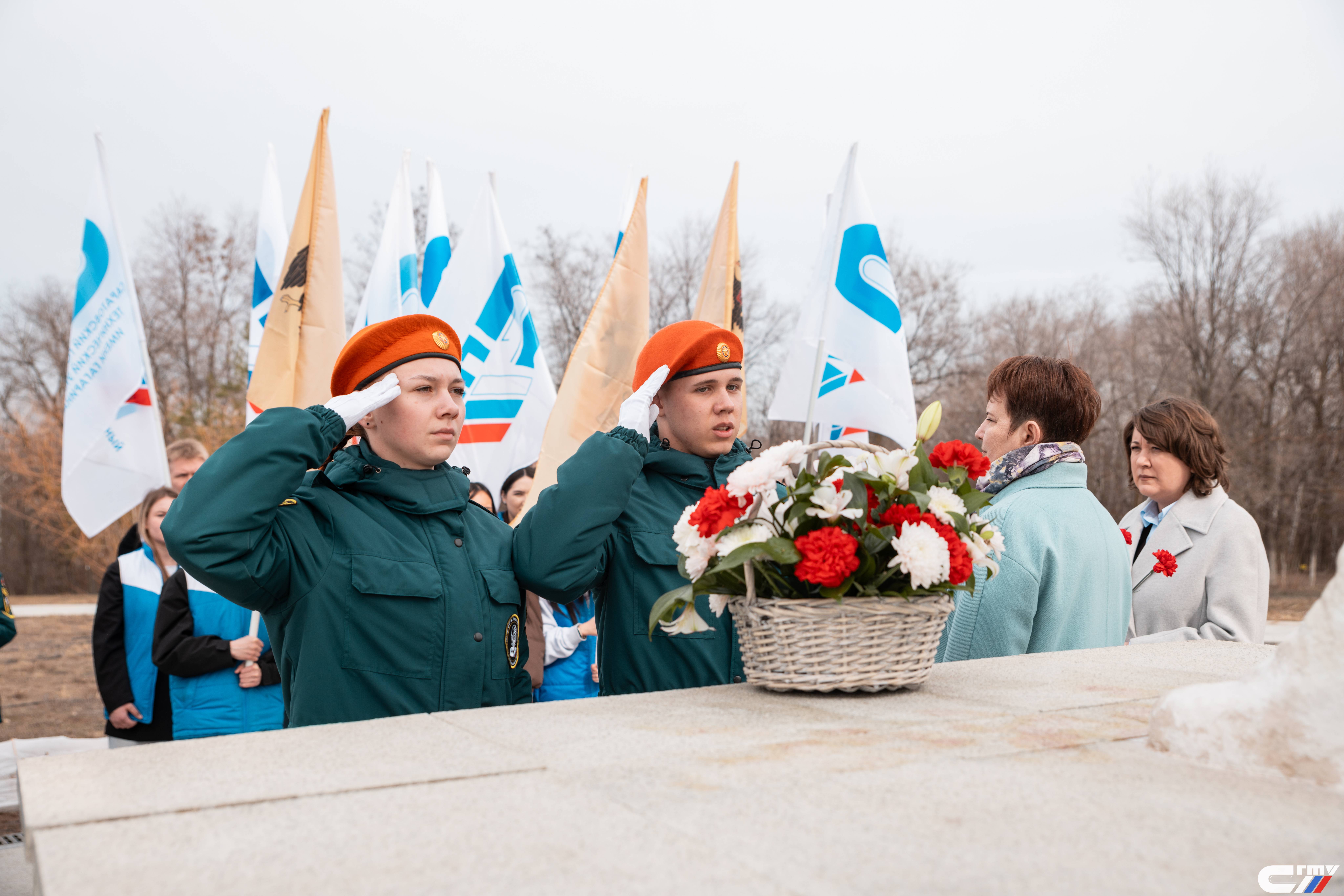 В день памяти космонавта члены Саратовского регионального отделения Российского военно-исторического общества - директор ППК СГТУ Татьяна Кузнецова и директор Культурно-просветительского центра СГТУ Наталья Обрежа, а также студенты Политеха и Профессионально-педагогического колледжа посетили Парк покорителей космоса, где возложили цветы к памятнику Юрия Гагарина.