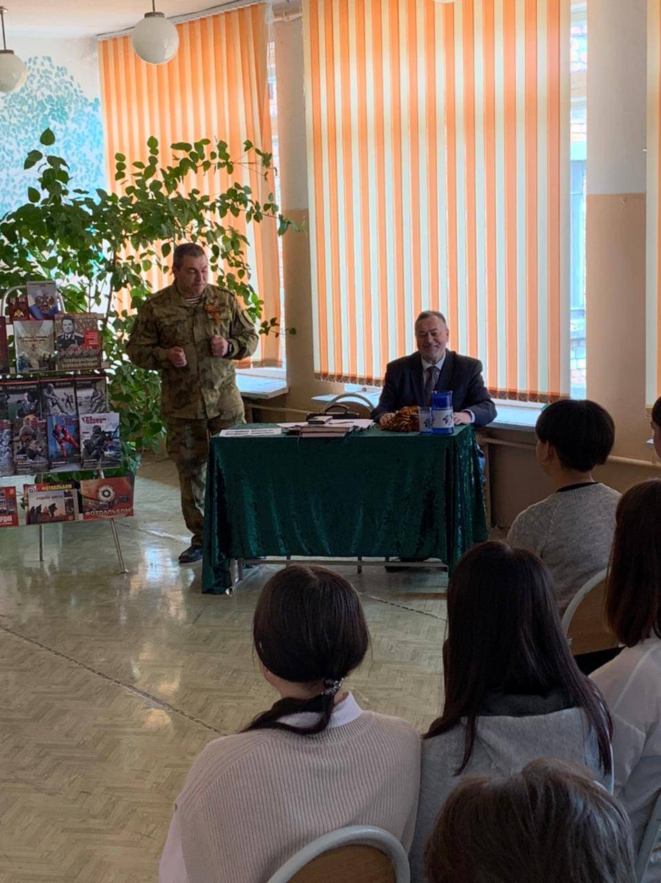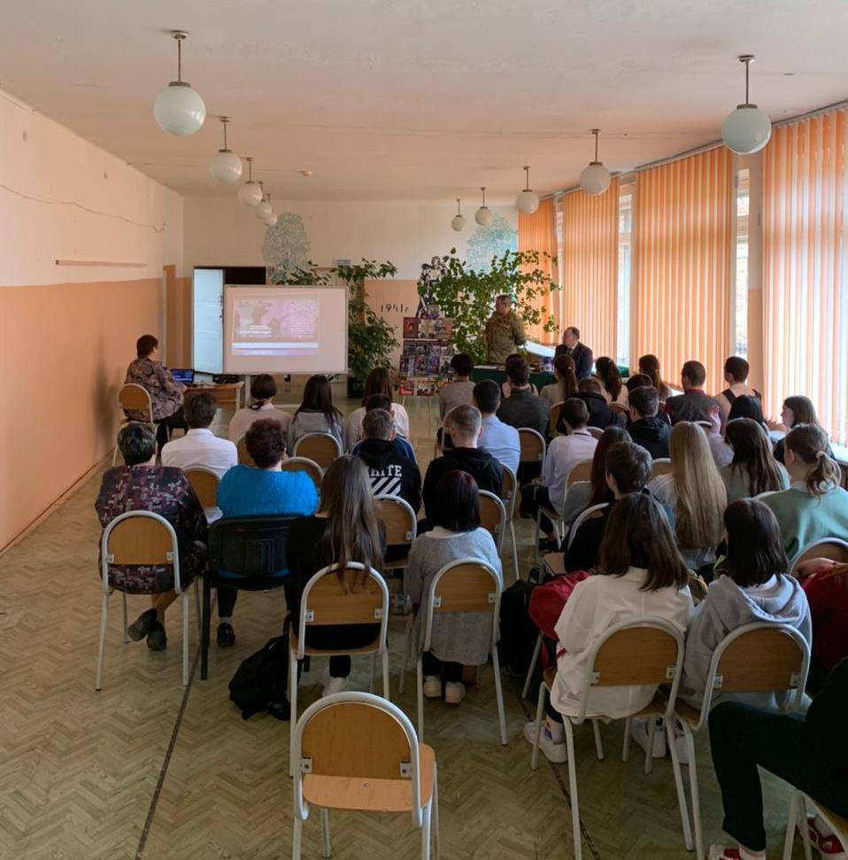 Член Саратовского регионального отделения Российского военно-исторического общества Александр Гранков и Председатель Совета ветеранов региональной общественной организации войск правопорядка Саратовской области – помощник начальника управления Росгвардии по Саратовской области по работе с ветеранами Сергей Дащенко рассказали старшеклассникам о ратных буднях военнослужащих и сотрудников Росгвардии. О важной и ответственной работе солдат правопорядка по обеспечению мирного труда наших сограждан, о мужестве и стойкости военнослужащих и сотрудников при выполнении задач в рамках специальной операции по защите мирного населения жителей Донецкой и Луганской народных республик, а также освобождении ряда других областей и районов Украины от неонацистов.
