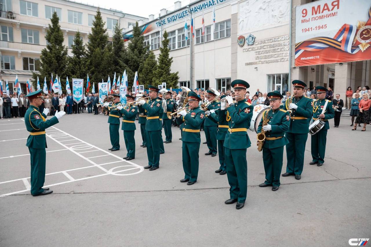 На главной площади СГТУ имени Гагарина Ю.А. состоялся торжественный митинг, посвящённый 80-й годовщине Победы в Великой Отечественной войне. Он был организован по инициативе председателя Саратовского регионального отделения «Российского военно-исторического общества» Сергея Наумова.
