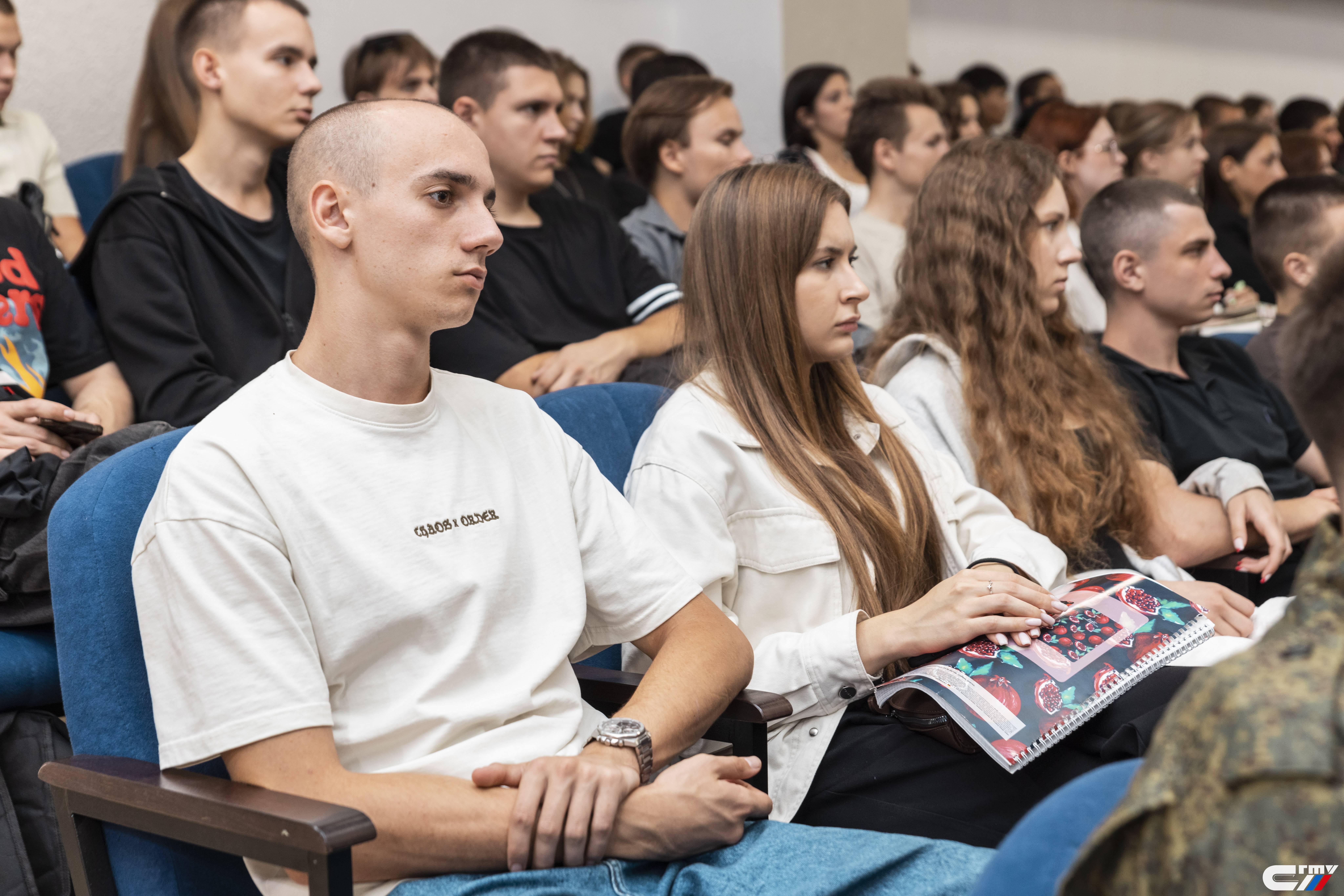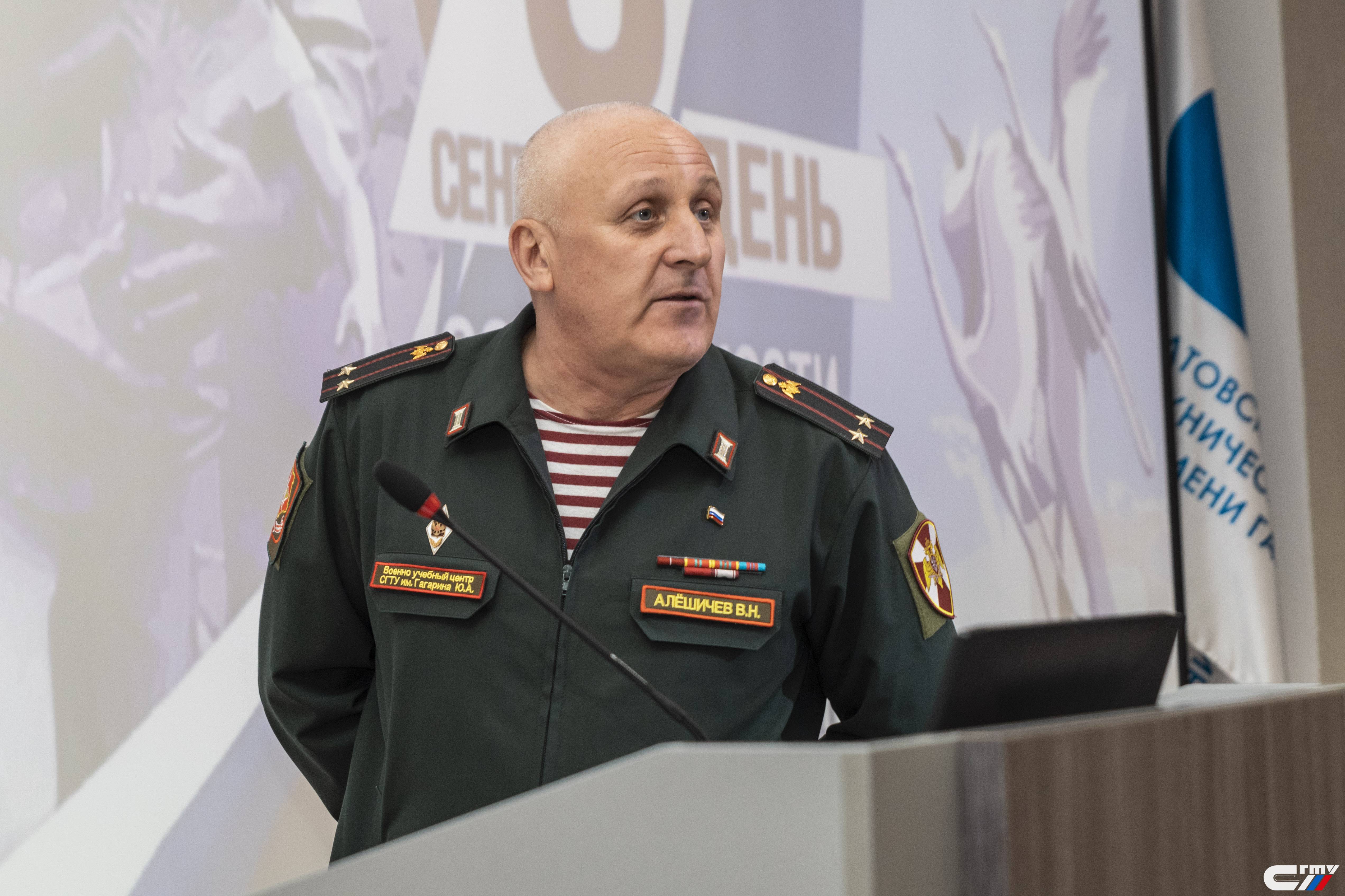В ходе встречи перед собравшимися выступил ветеран боевых действий, подполковник запаса, начальник цикла Военного учебного центра Валерий Алёшичев. Он рассказал об истоках, причинах и последствиях такого страшного явления, как терроризм.