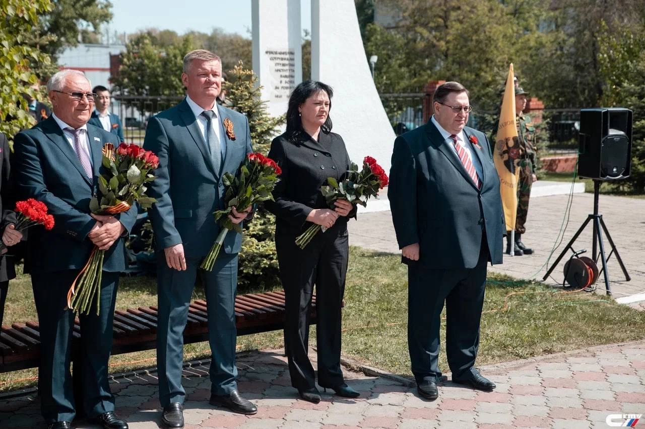 Далее участники митинга почтили память погибших минутой молчания, а затем возложили цветы к стеле, установленной в память преподавателям, сотрудникам и студентам автодорожного института, павших в боях за Родину в 1941 - 1945 годах.