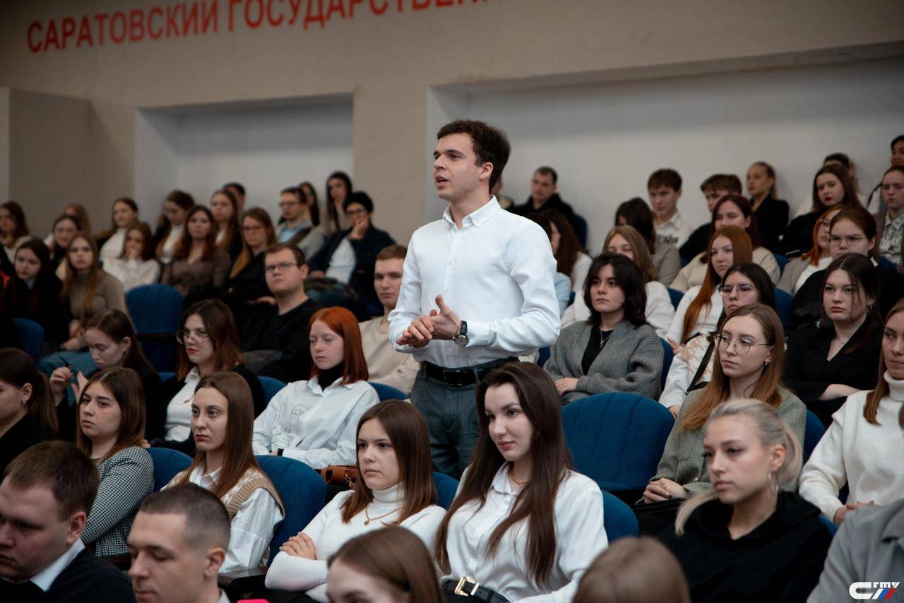 Студенты СГТУ имени Гагарина Ю.А. встретились с научным директором Российского военно-исторического общества Михаилом Мягковым.