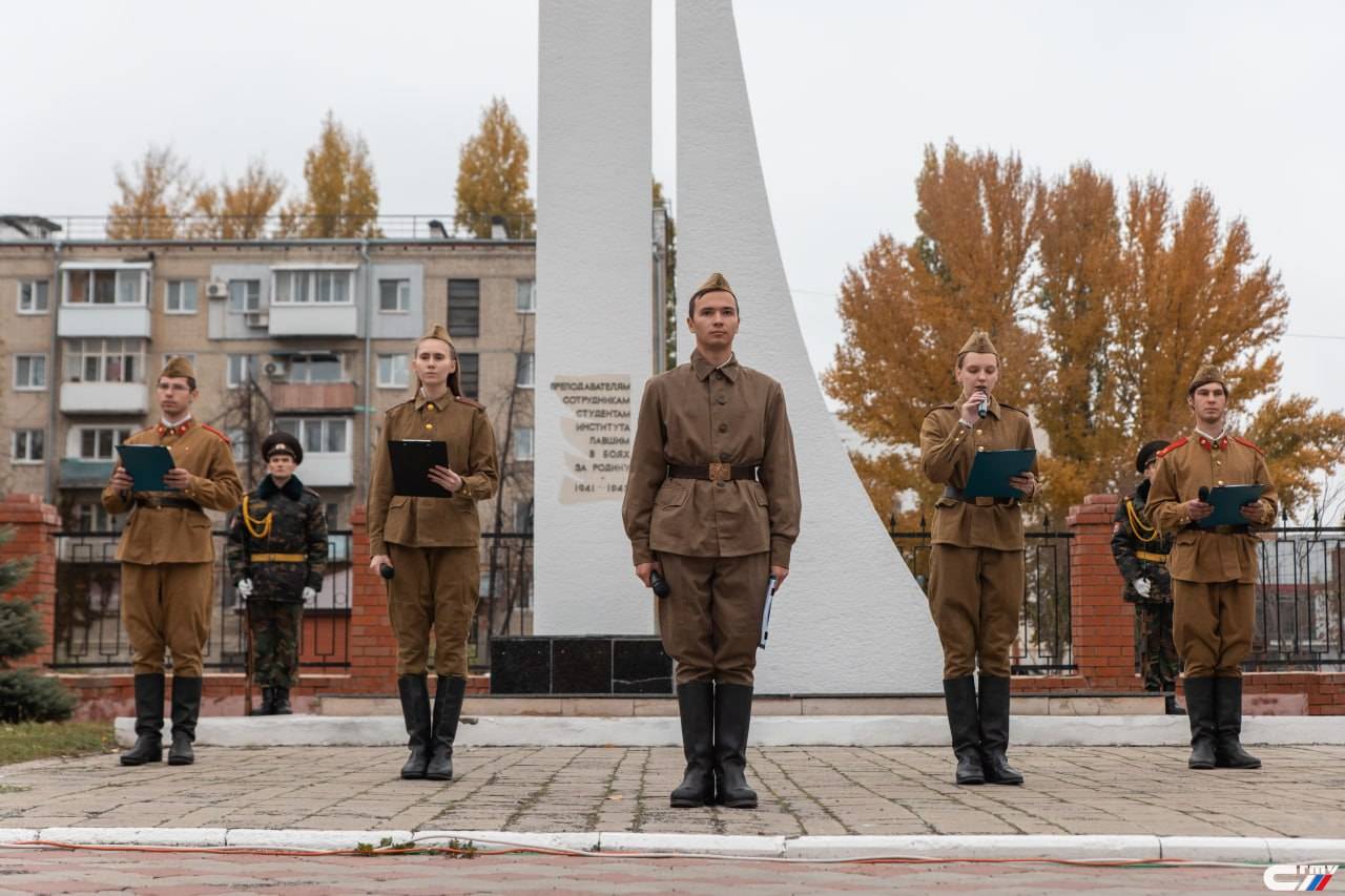 Участники мероприятия вспомнили земляков, проявивших отвагу и патриотизм, защищая Родину. Всего в годы Великой Отечественной войны на фронт из Саратовской области ушли около 680 тыс. человек, почти половина — более 300 тыс. человек — не вернулись домой. Мемориальный комплекс «Журавли», расположенный в парке Победы на Соколовой горе г. Саратова, посвящен саратовцам, погибшим в Великой Отечественной войне 1941 - 1945 гг. Его автор — архитектор Менякин Ю.И. был преподавателем кафедры «Архитектура» политехнического института (ныне СГТУ имени Гагарина Ю.А.). Строительство Мемориала началось весной 1980 года и закончилось в апреле 1982 г.