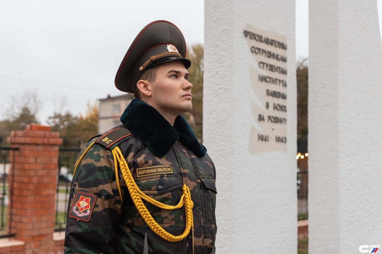 Участники мероприятия почтили минутой молчания всех тех, кто погиб, защищая нашу страну, во время Великой Отечественной войны, в различных вооруженных конфликтах за пределами нашей страны, в Специальной военной операции. Затем возложили цветы к стеле, установленной в память преподавателям, сотрудникам и студентам автодорожного института, павших в боях за Родину в 1941-1945 годах.