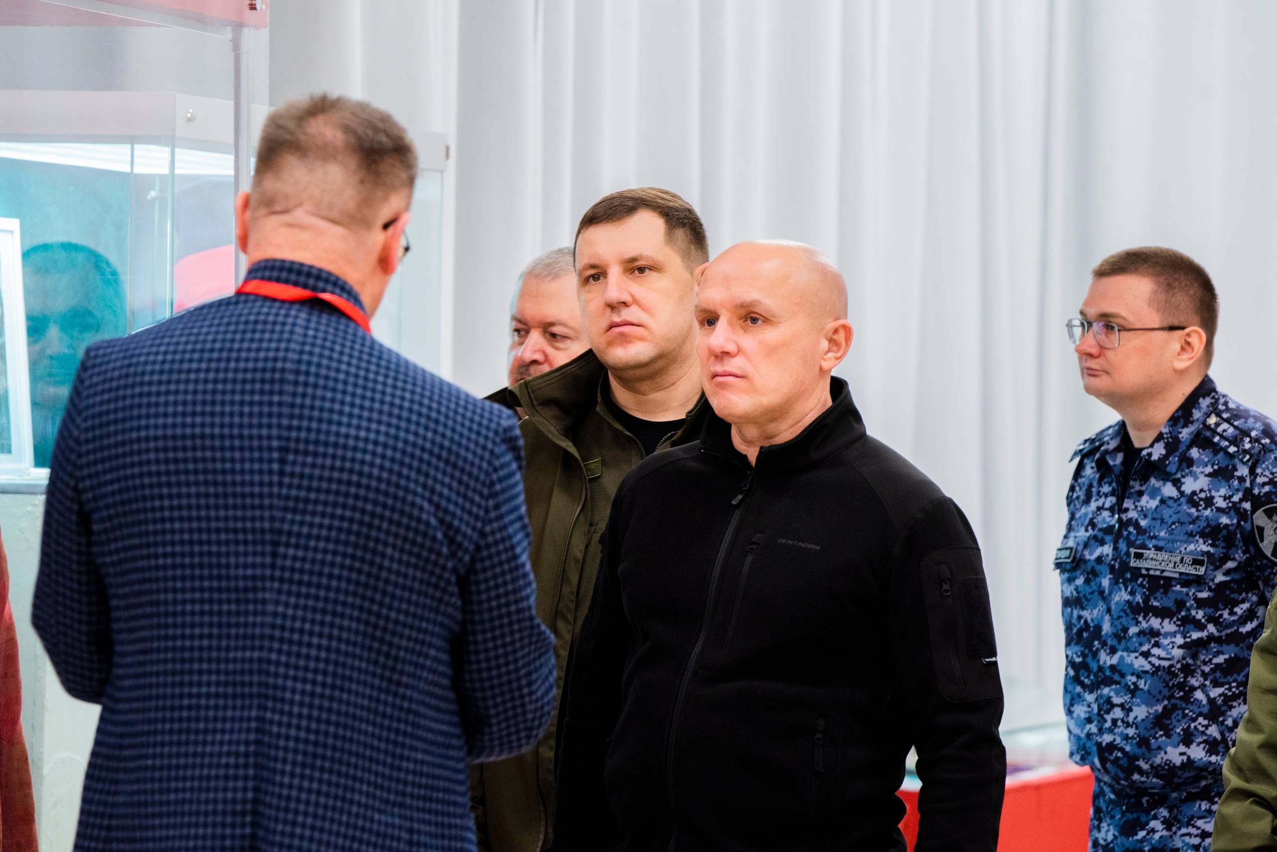Юрий Филипенко, руководитель сахалинского отделения Российского военно-исторического общества провел обзорную экскурсию по экспозициям Музейно-мемориального комплекса «Победа» для командующего Восточным округом Росгвардии.