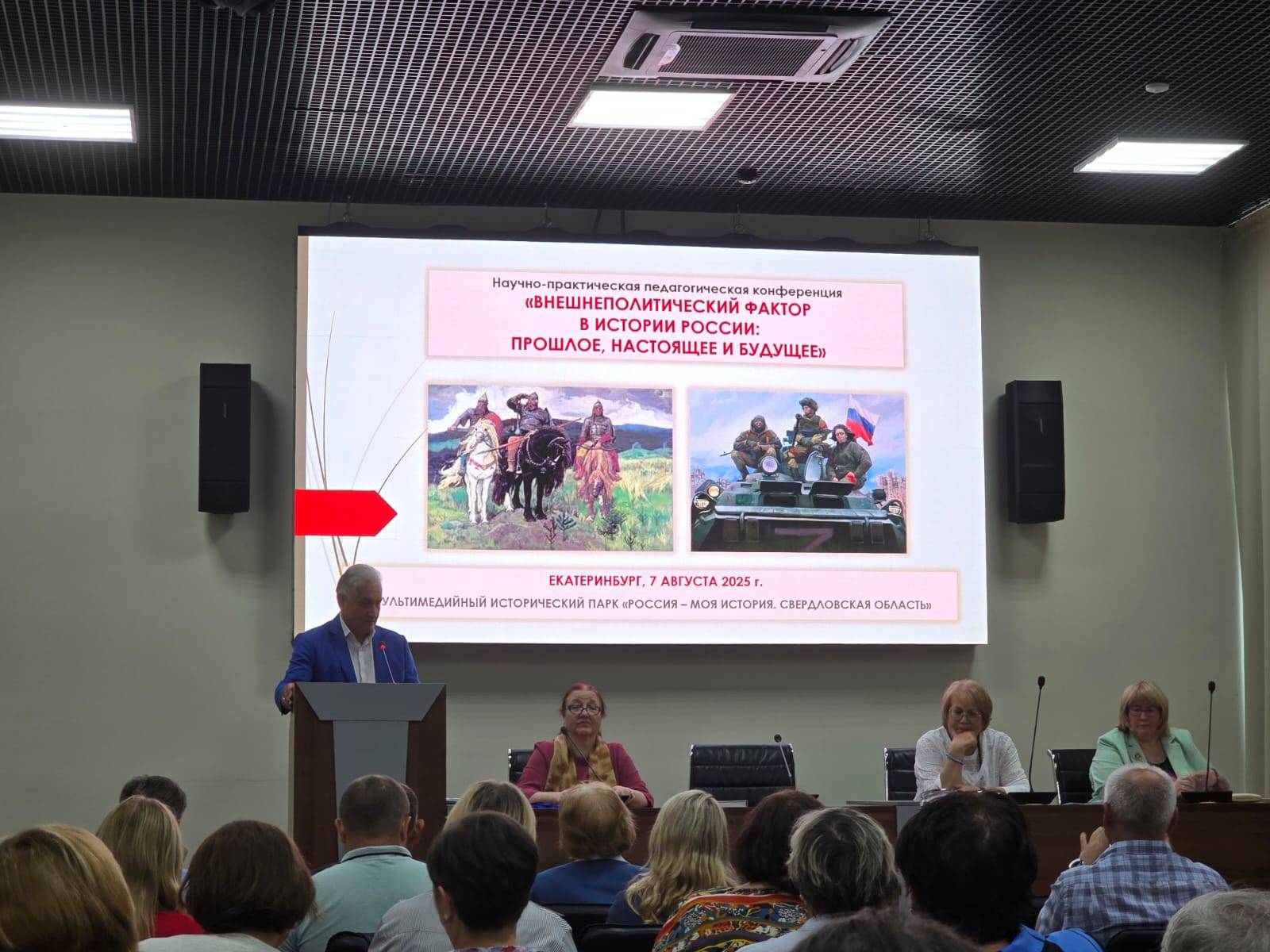 7 августа в мультимедийном историческом парке «Россия – Моя история. Свердловская область» состоялась научно-практическая конференция учителей «Внешнеполитический фактор в истории России: вызовы прошлого, настоящего и будущего». В мероприятии активное участие приняли представители Свердловского регионального отделения Российского военно-исторического общества (РВИО).