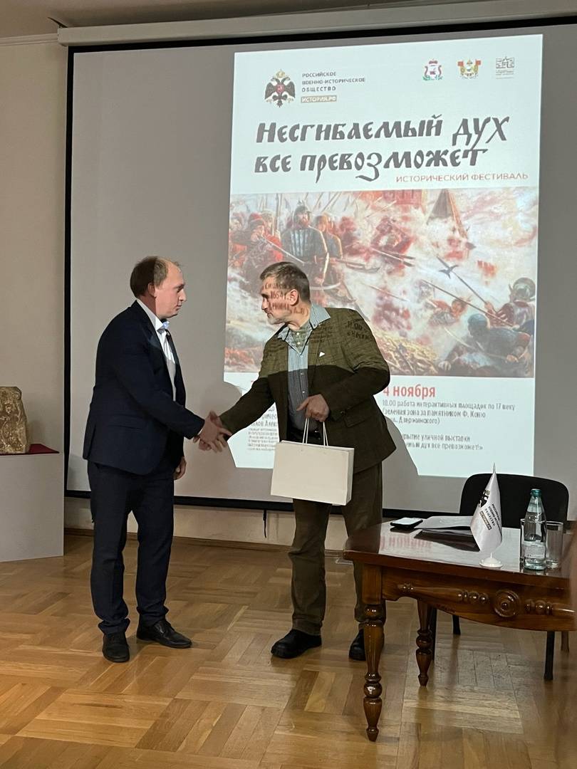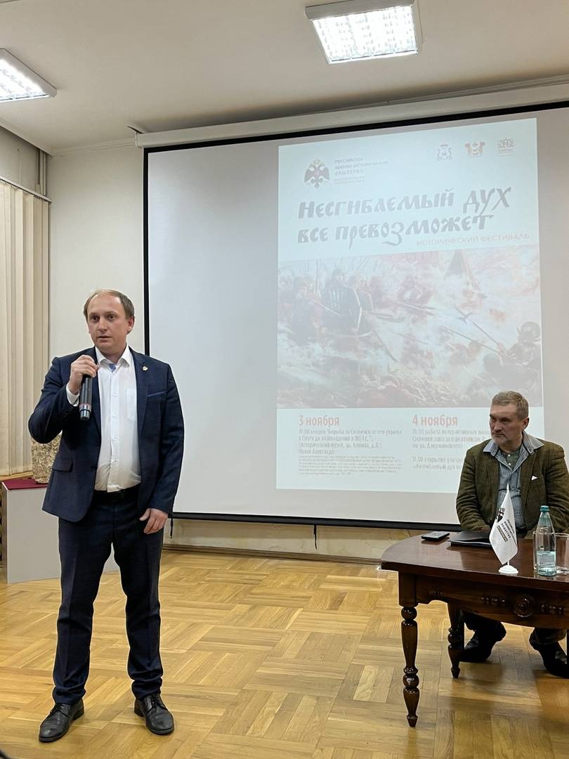 3 ноября в 19.00 в рамках исторического фестиваля «Несгибаемый дух все превозможет», в Историческом музее состоялась лекция «Борьба за Смоленск от его утраты в Смуту до возвращения в 1654 г», которую провел кандидат исторических наук, старший научный сотрудник «Центра военной истории России» и автор монографий по истории России XVII века Александр Малов.