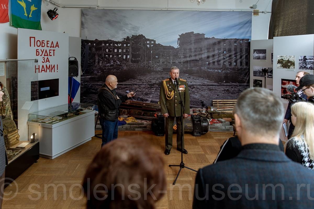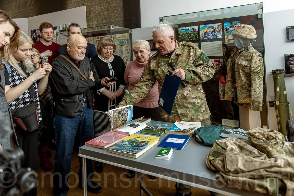 В рамках мероприятия состоялась акция передачи Смоленскому музею-заповеднику экспонатов из зоны спецоперации, которую провёл председатель военно-исторического клуба «Смоленский рубеж» Константин Черствов.